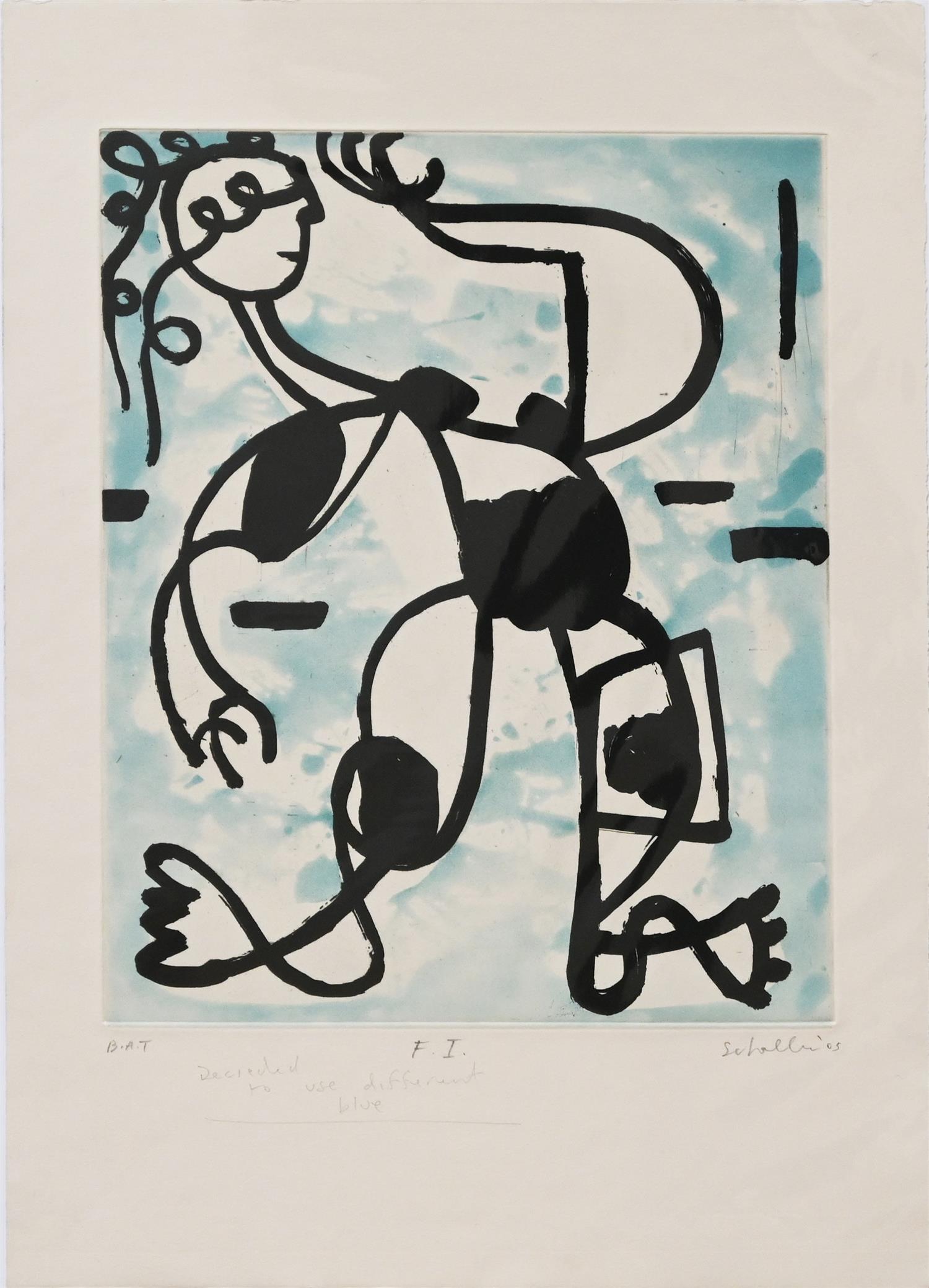 MARK SCHALLER, F.I., ETCHING B.A.T., 42 X 30CM, ARTIST'S NOTE BELOW IMAGE: "DECIDED TO USE DIFFERENT BLUE"