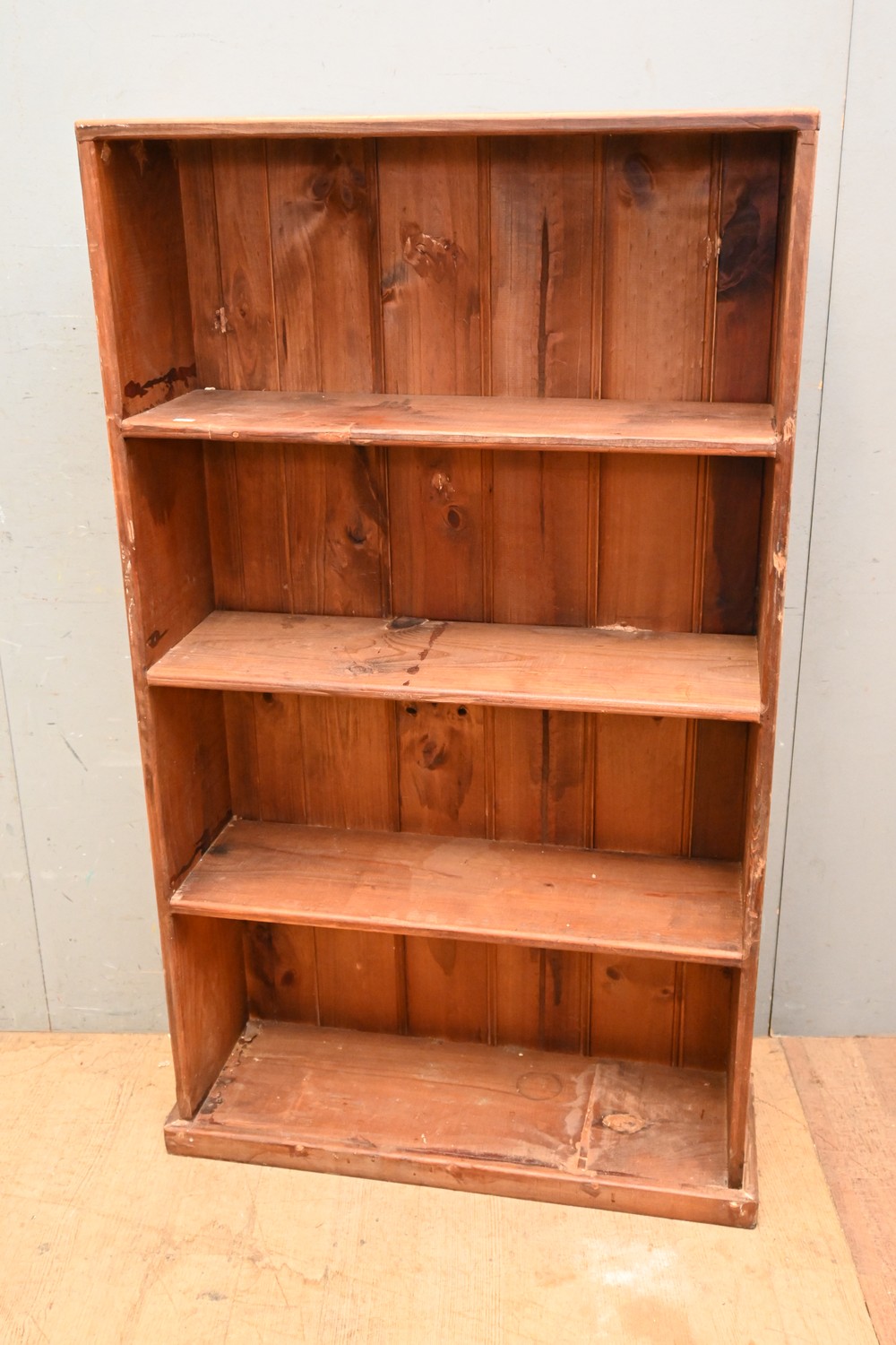 A RUSTIC PINE BOOKCASE (A/F) (131H X 75W X 25D CM) (LEONARD JOEL DELIVERY SIZE: LARGE)