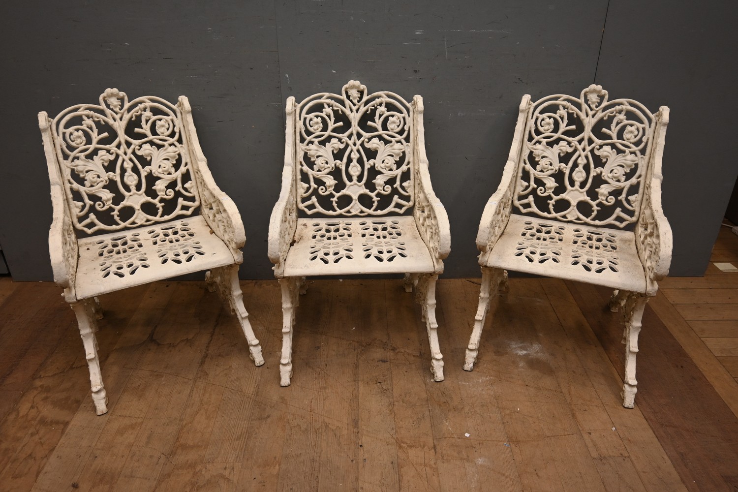 A SET OF THREE CAST IRON GARDEN CHAIRS (A/F) ( 82H X 52W X 60D CM) PLEASE NOTE THIS HEAVY ITEM MUST BE REMOVED BY CARRIERS AT THE CUSTOMER'S EXPENSE. LEONARD JOEL STAFF CANNOT ASSIST CARRYING THIS ITEM) (X-LARGE ITEM)