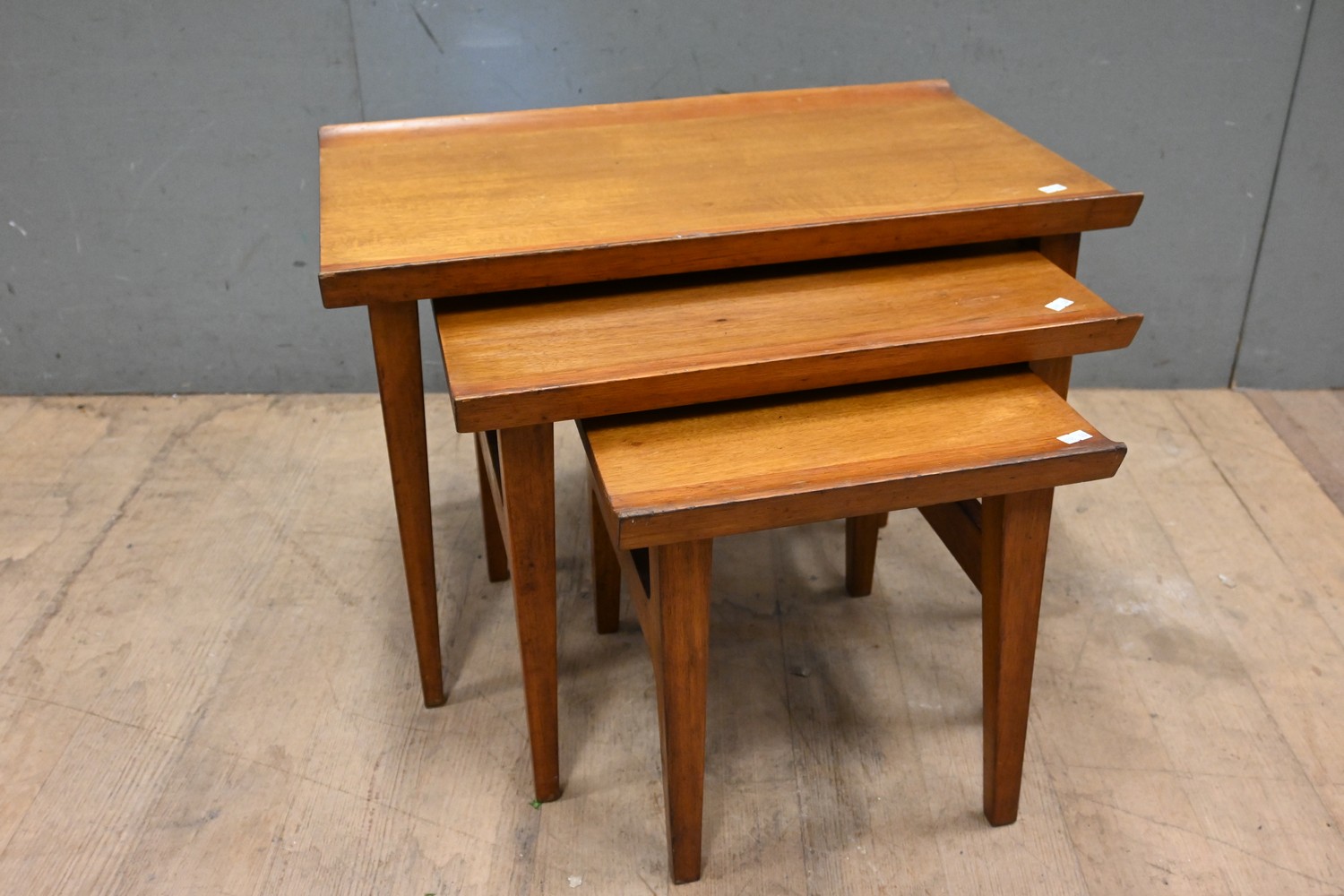 A NEST OF THREE TEAK OCCASIONAL TABLES (48H X 67W X 41D CM) (LEONARD JOEL DELIVERY SIZE: MEDIUM)