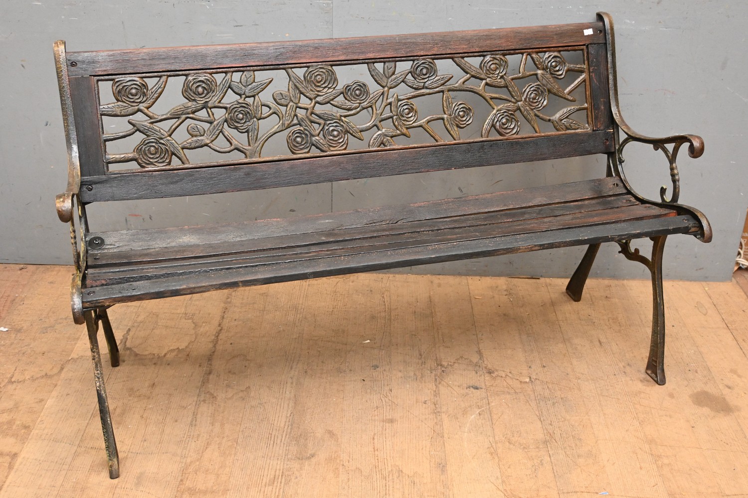 A CAST METAL AND WOOD GARDEN BENCH (74H X 126W X 58D CM) (LEONARD JOEL DELIVERY SIZE: LARGE)