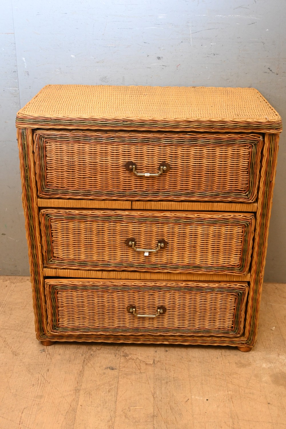 A THREE DRAWER WICKER CHEST (76H X 72W X 43D CM) (LEONARD JOEL DELIVERY SIZE: LARGE)