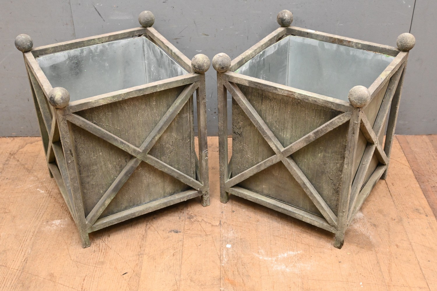 A PAIR OF METAL PLANTERS WITH REMOVABLE LINER (50H X 43W X 43D CM) (LEONARD JOEL DELIVERY SIZE: LARGE)