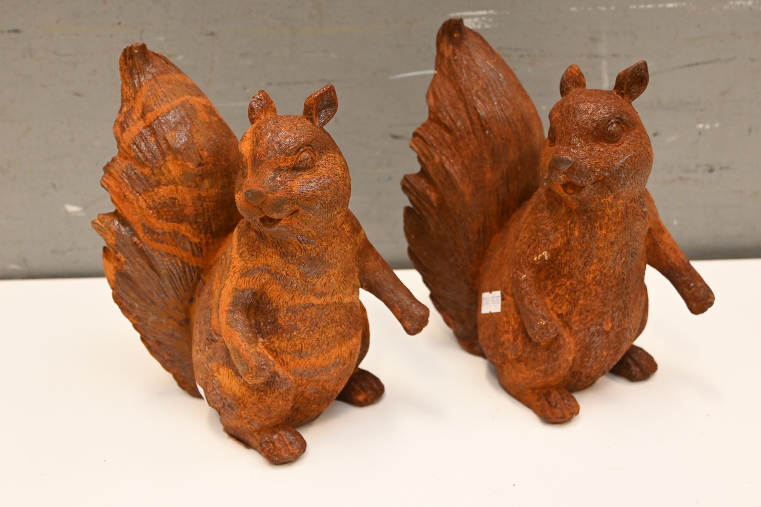 A PAIR OF CAST IRON SQUIRELLS (22H CM) (LEONARD JOEL DELIVERY SIZE: SMALL)