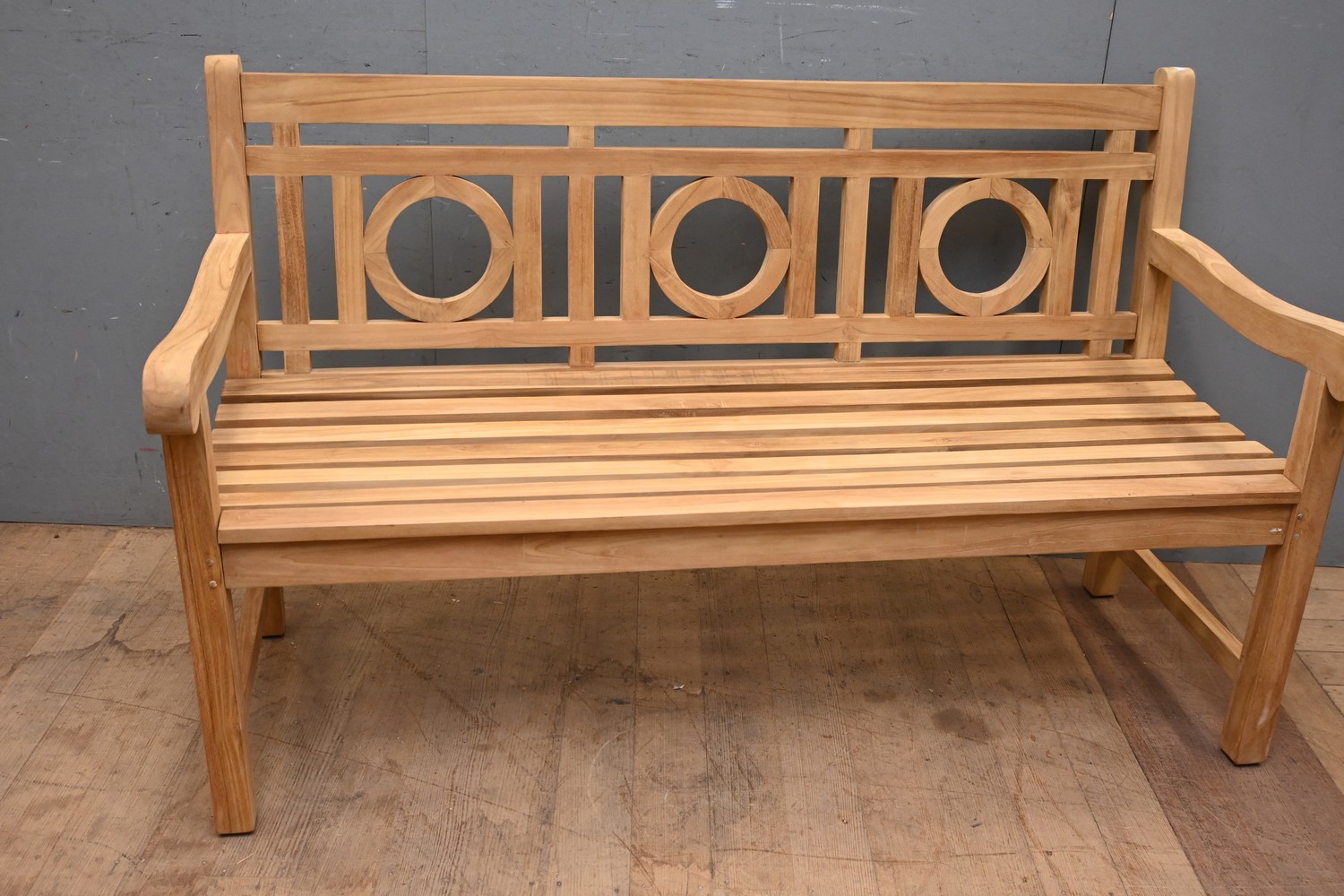 A TEAK OUTDOOR BENCH SEAT (92H X 152W X 67D CM) (LEONARD JOEL DELIVERY SIZE: LARGE)