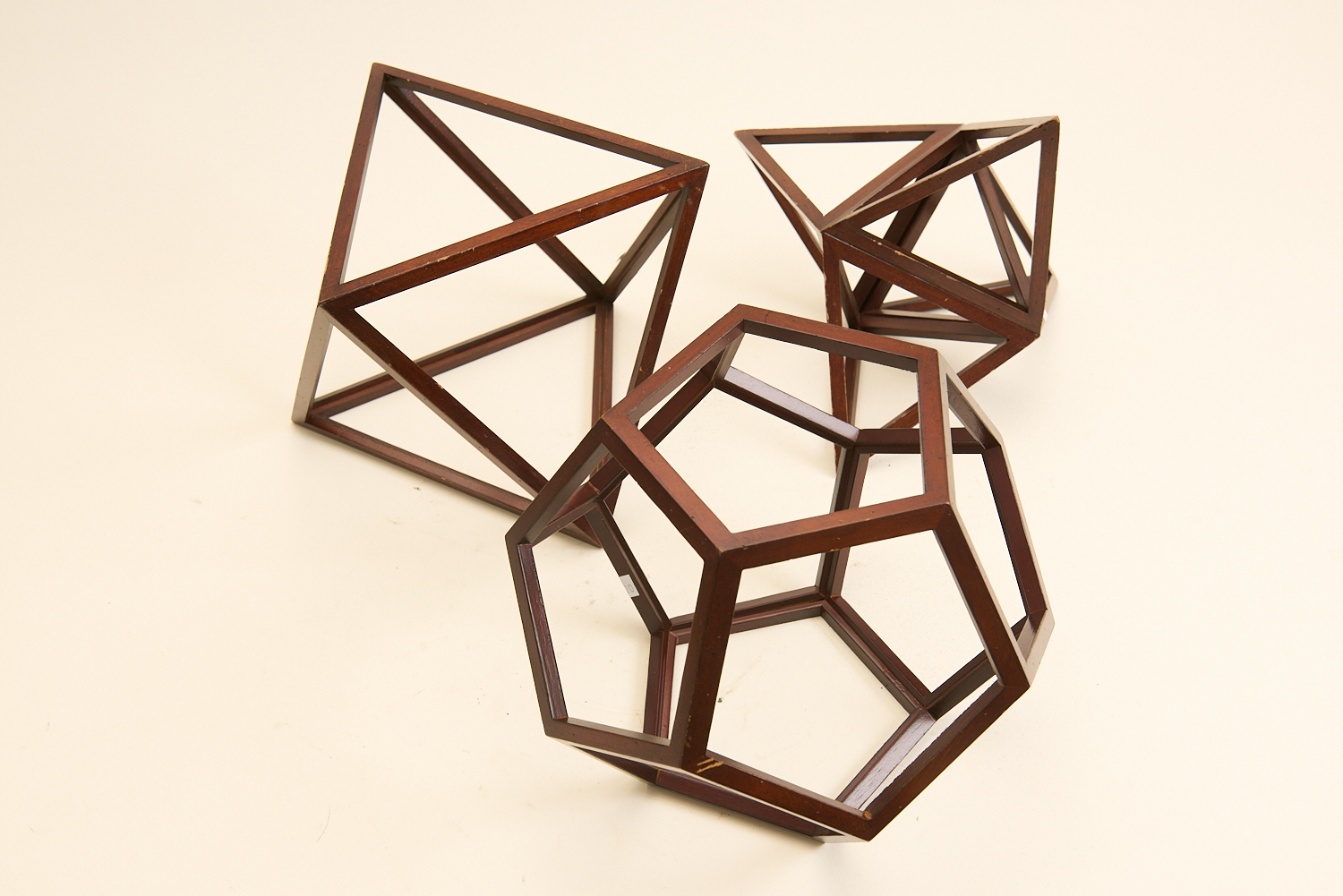 A COLLECTION OF THREE GEOMETRIC WOODEN FORMS H.20CM, LEONARD JOEL LOCAL DELIVERY SIZE: MEDIUM