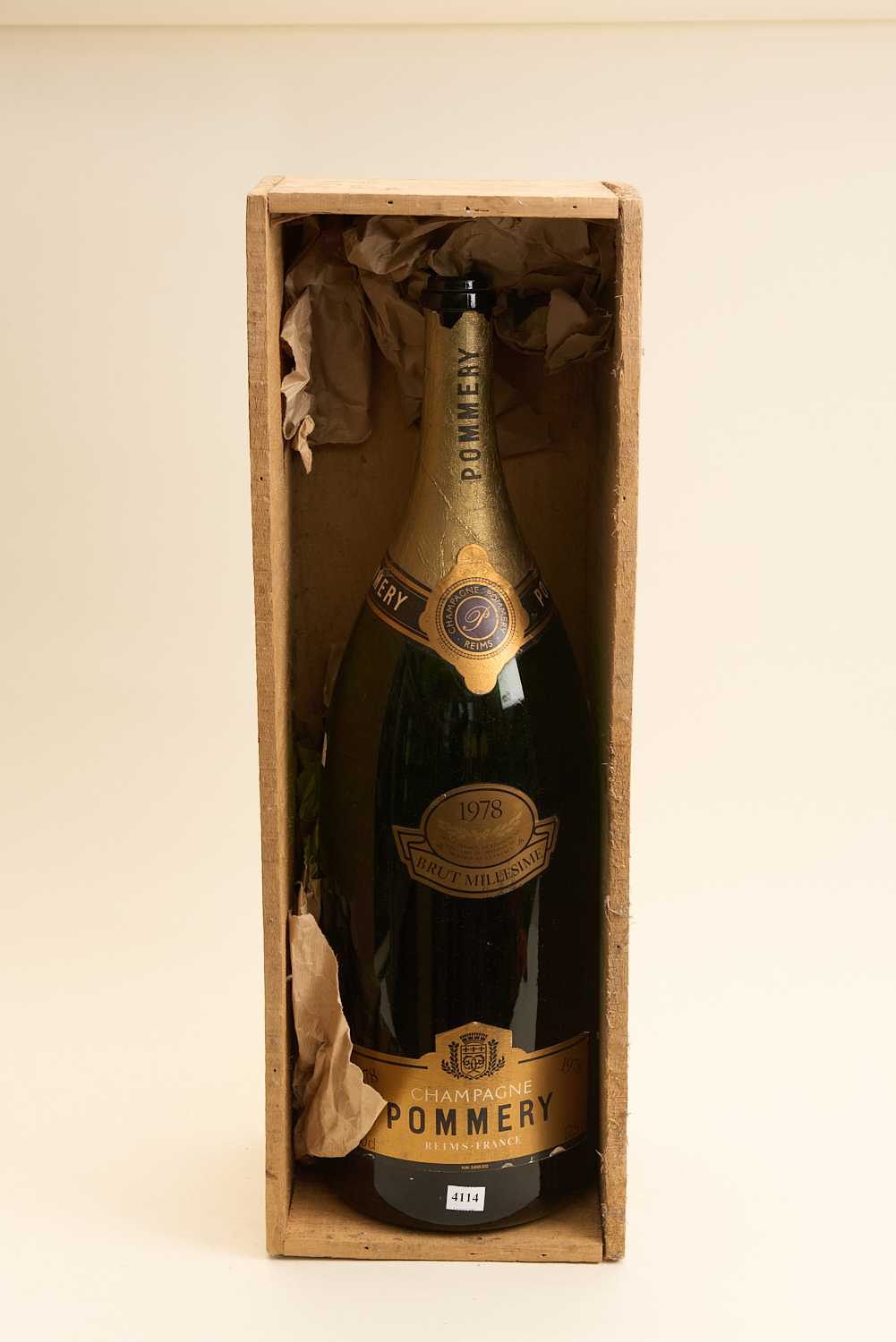 A 1978 POMMERY MAGNUM BOTTLE, PURPORTEDLY FROM LE MANS GRAND PRIX IN ORIGINAL BOX (NO CONTENTS) H.71CM (BOX), LEONARD JOEL LOCAL DELIVERY SIZE: MEDIUM