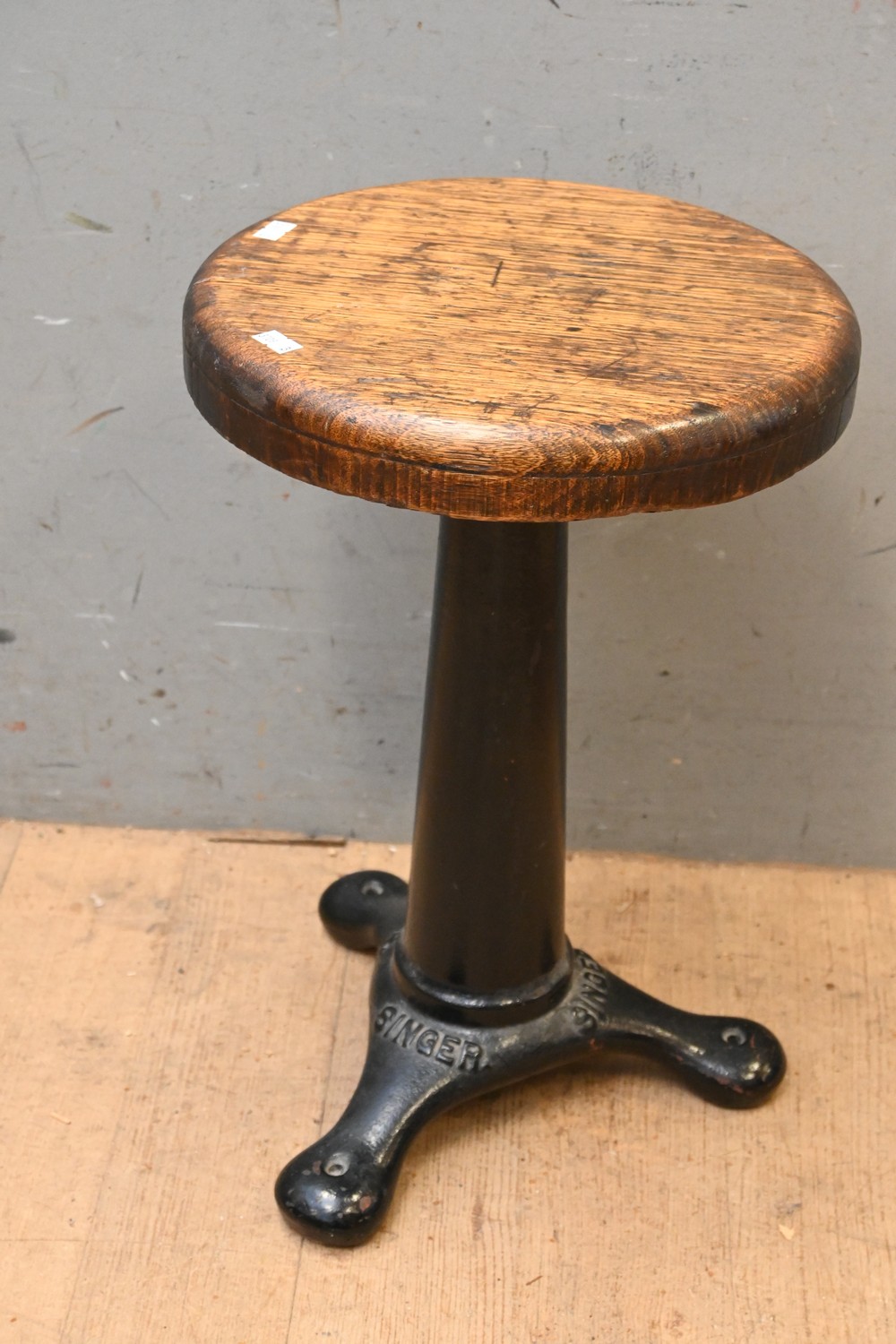 A CAST IRON BASED SEWING MACHINE STOOL, STAMPED SINGER (46H X 31 DIAMETER) (LEONARD JOEL DELIVERY SIZE: MEDIUM)