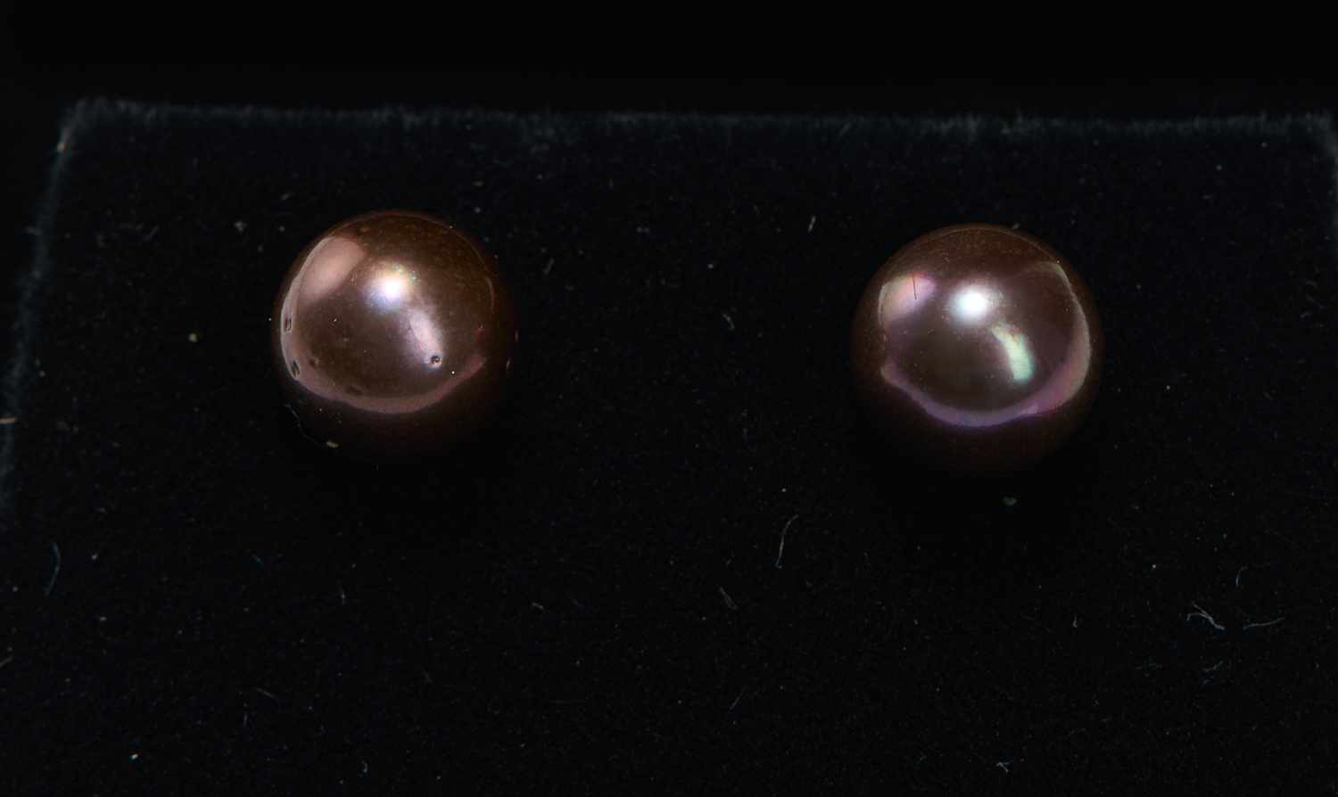 A PAIR OF BLACK CULTURED 6MM PEARL STUDS, TO POSTS AND KEEPERS IN 9CT GOLD