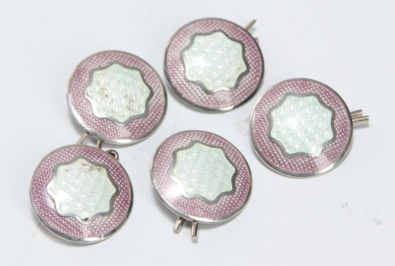 A SET OF ENAMELLED BUTTONS IN STERLING SILVER, DIAMETER APPROXIMATELY 19MM