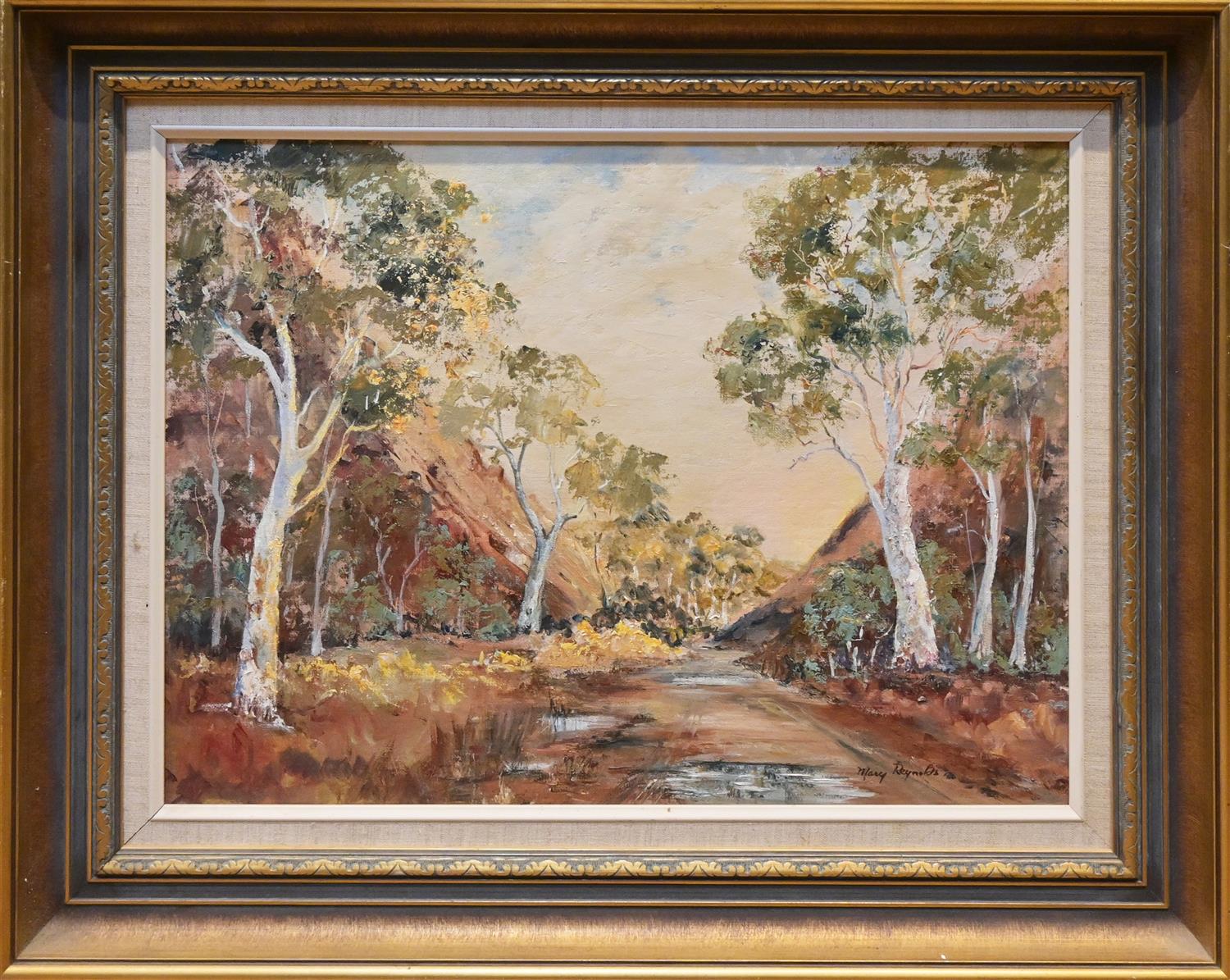 MARY REYNOLDS, BUNYEROO GORGE FLINDERS RANGES, OIL ON BOARD, 39 X 56CM