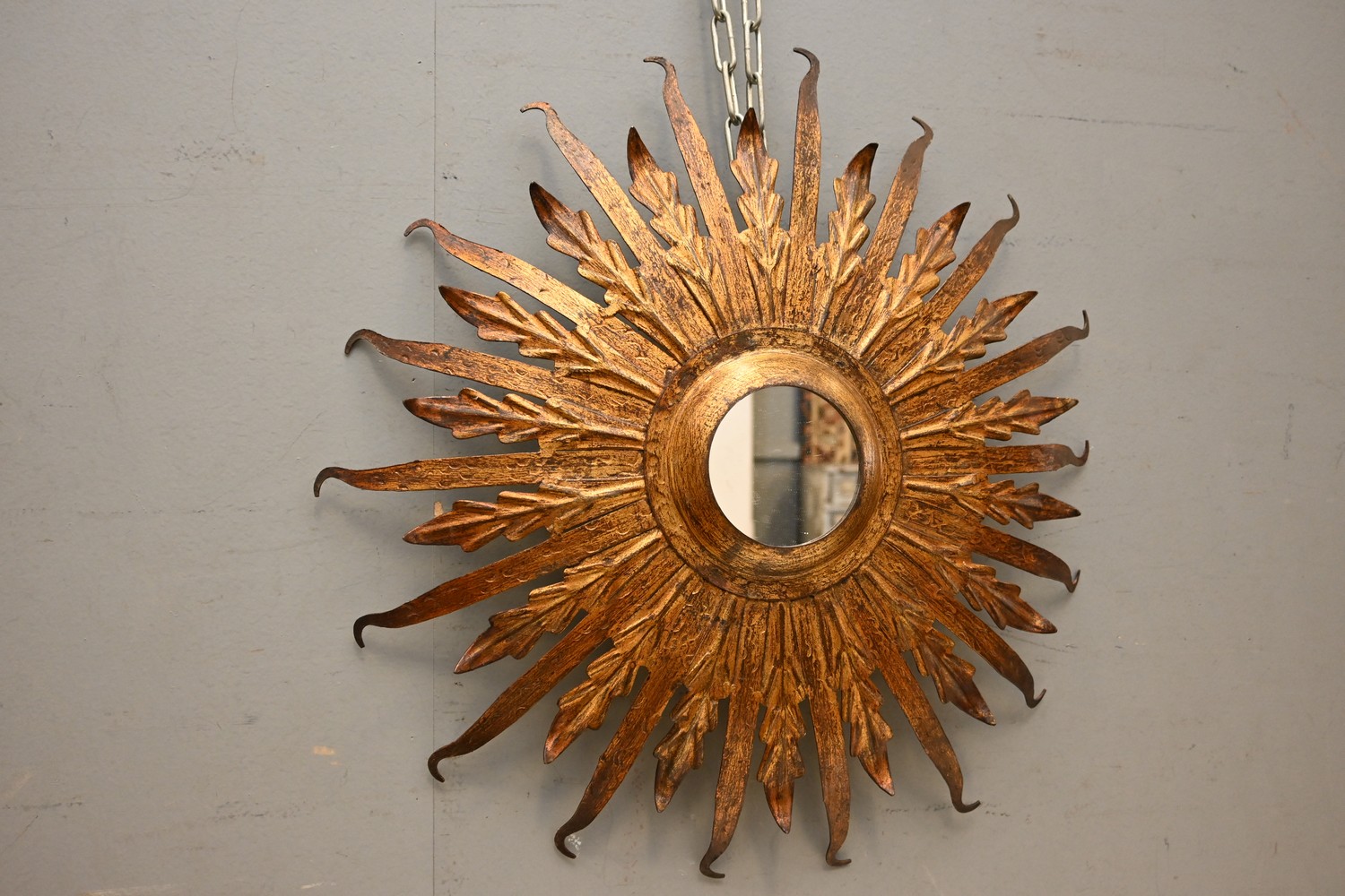 A FRENCH GILT METAL STARBURST MIRROR (54 DIAMETER) (LEONARD JOEL DELIVERY SIZE: MEDIUM)