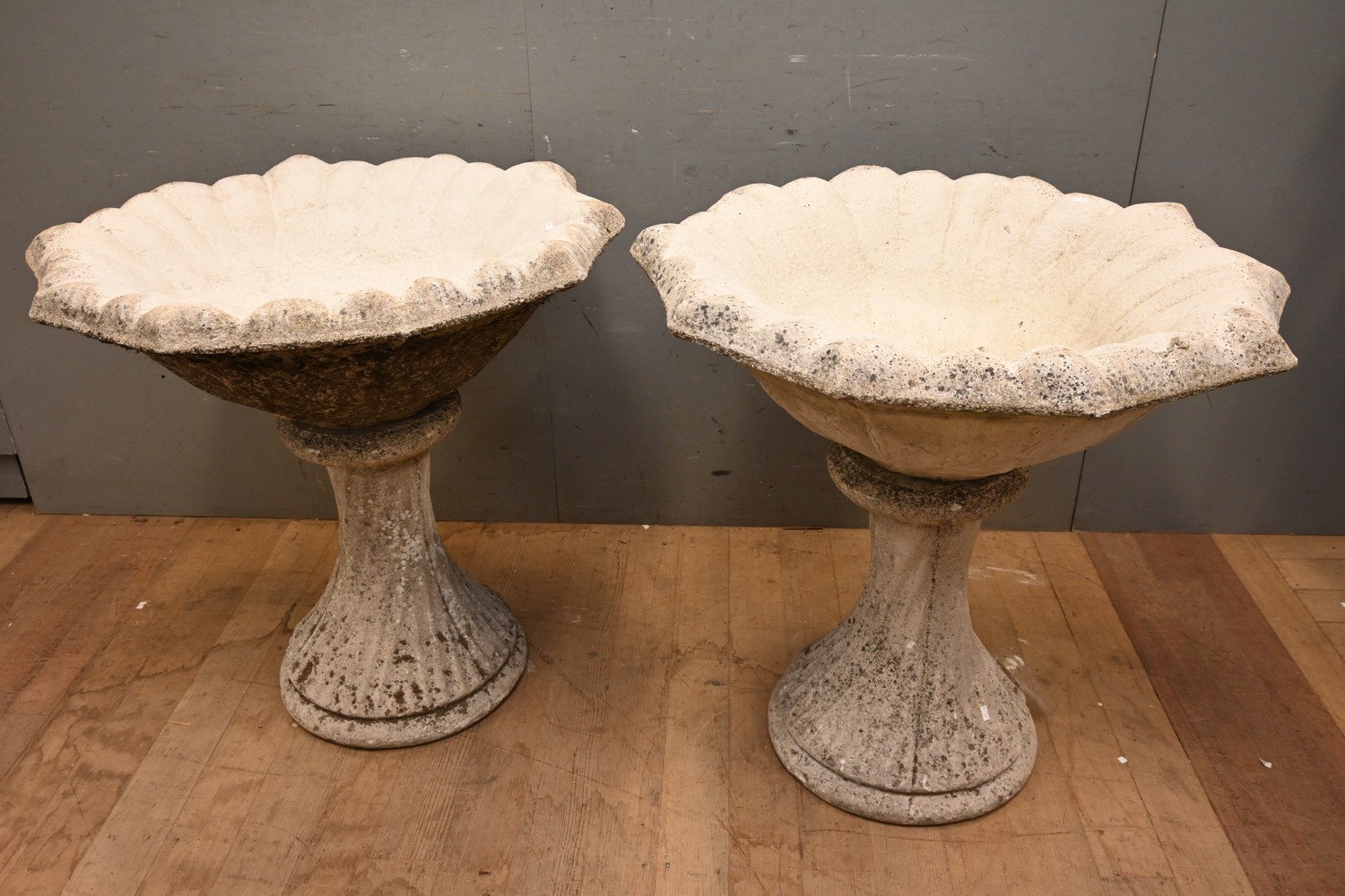 PAIR OF LARGE FRENCH RECONSTITUTED STONE TWO PIECE GARDEN POTS/FOUNTAINS (88H X 88D CM) (PLEASE NOTE THIS HEAVY ITEM MUST BE REMOVED BY CARRIERS AT THE CUSTOMER'S EXPENSE. LEONARD JOEL STAFF CANNOT ASSIST CARRYING THIS ITEM) (X-LARGE ITEM)