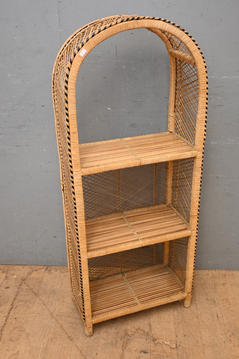 AUSTRALIAN MADE THREE TIER WOVEN CANE DOME TOP DISPLAY UNIT (A/F) (124H X 50W X 24D CM) (LEONARD JOEL DELIVERY SIZE: MEDIUM)
