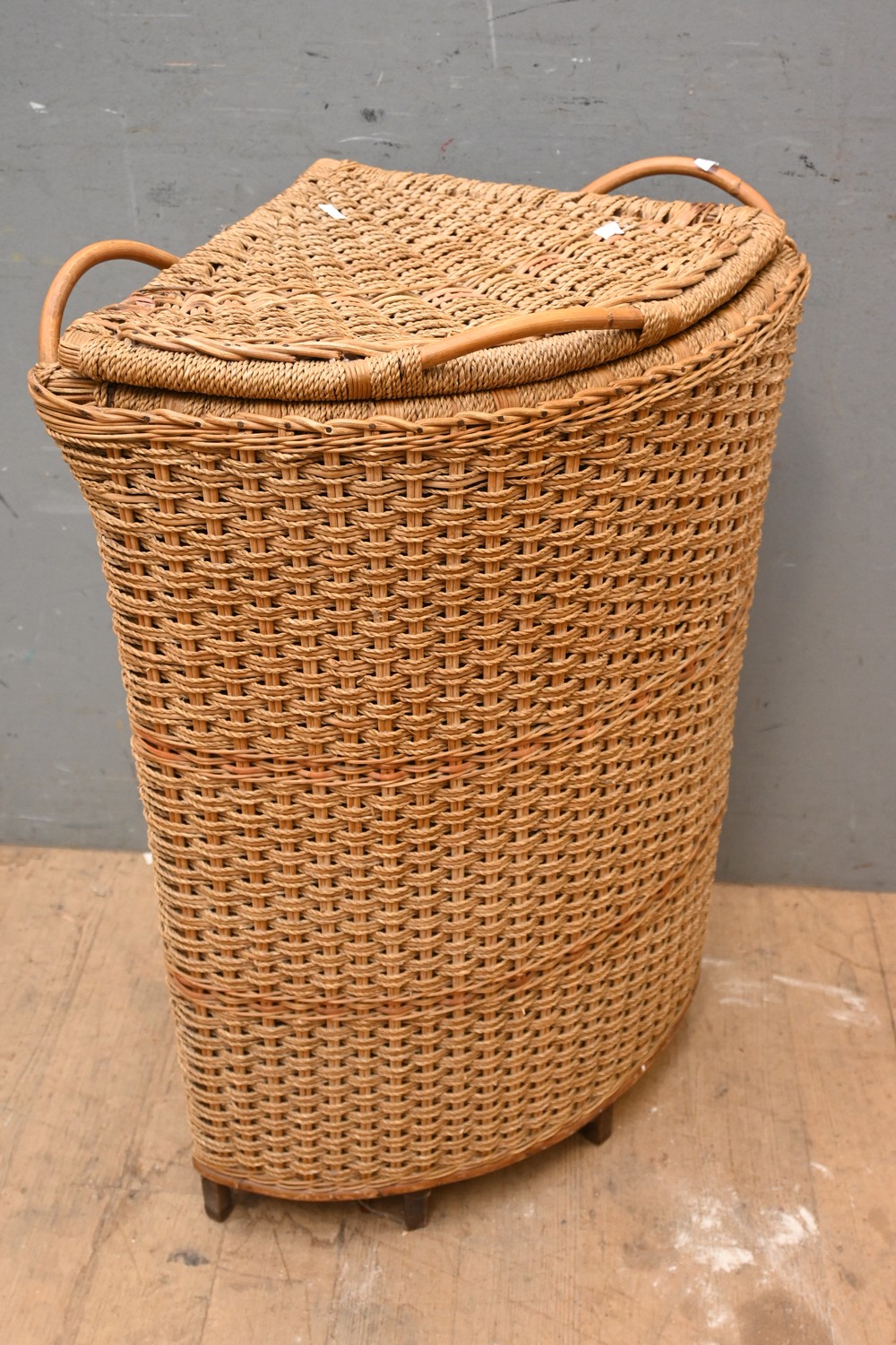 CORNER WOVEN SEAGRASS AND KANE HINGE LIDDED BASKET (87H X 60W X 42D CM) (LEONARD JOEL DELIVERY SIZE: LARGE)