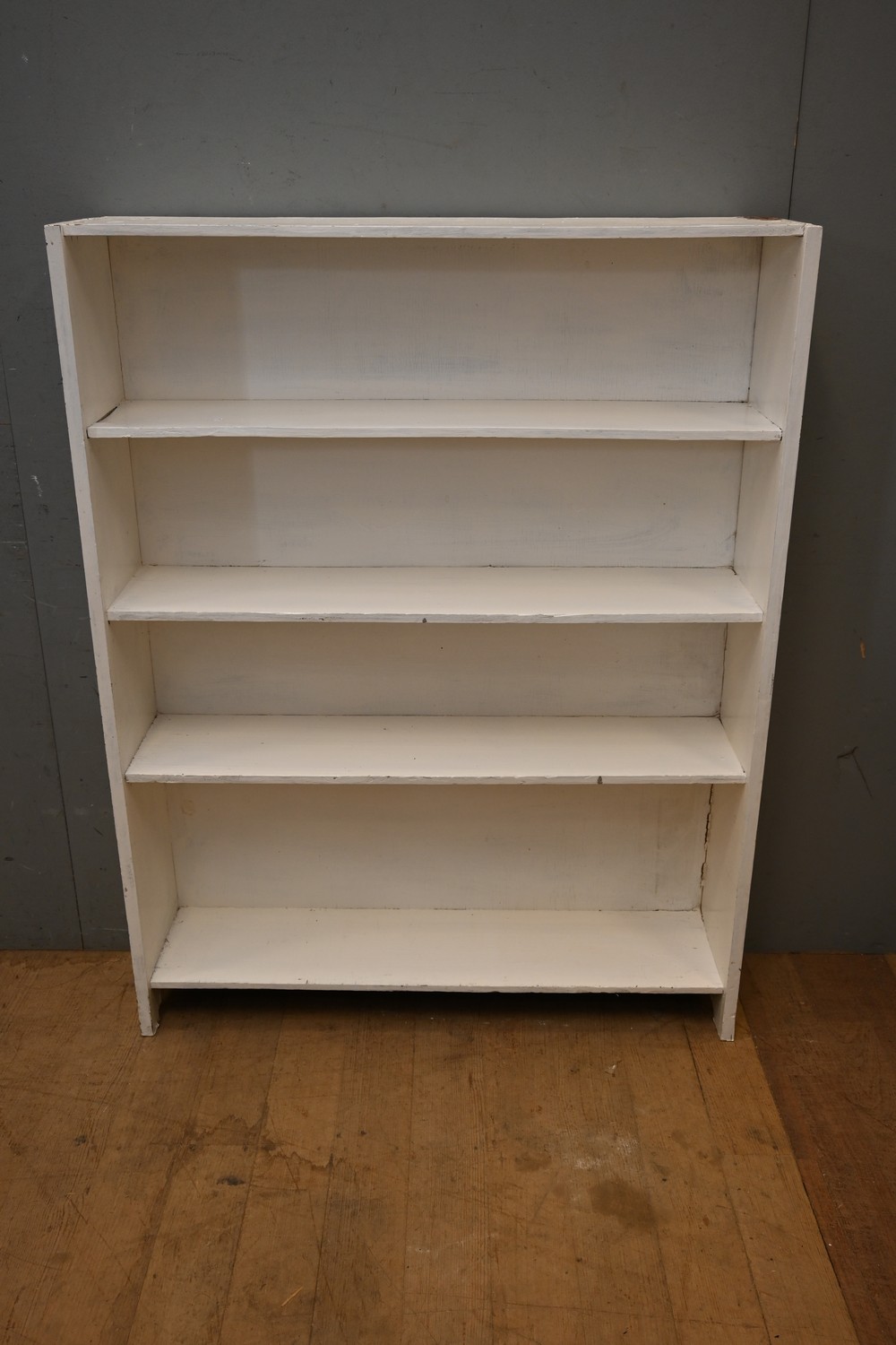 AUSTRALIAN OAK PAINTED WHITE FIVE TIER WOODEN BOOKSHELF (A/F) (120H X 94W X 22D CM) (LEONARD JOEL DELIVERY SIZE: LARGE)