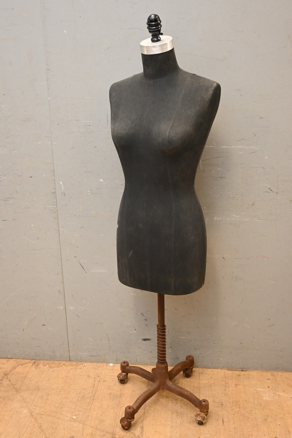 CAST IRON BASED TELESCOPIC BLACK MATERIAL FEMALE FORM MANNEQUIN (A/F) (146H X 70W X 42D CM) (LEONARD JOEL DELIVERY SIZE: LARGE)