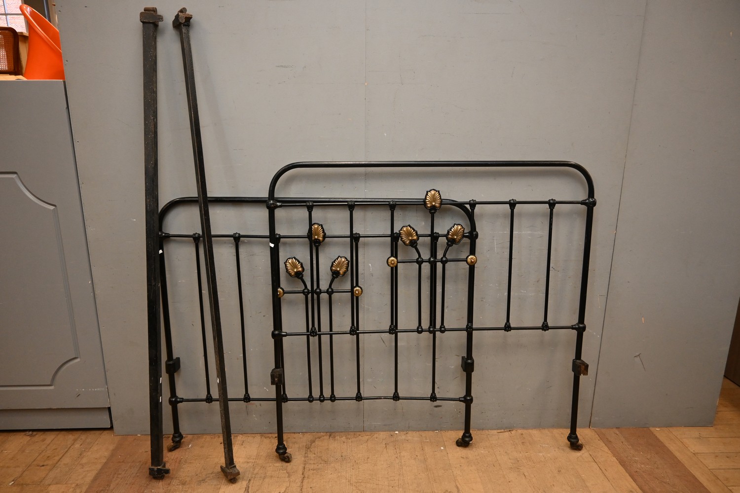 A VICTORIAN PAINTED BLACK PAINTED CAST-IRON AND BRASS BED WITH RAILS (131H X137W CM) (LEONARD JOEL DELIVERY SIZE: LARGE)