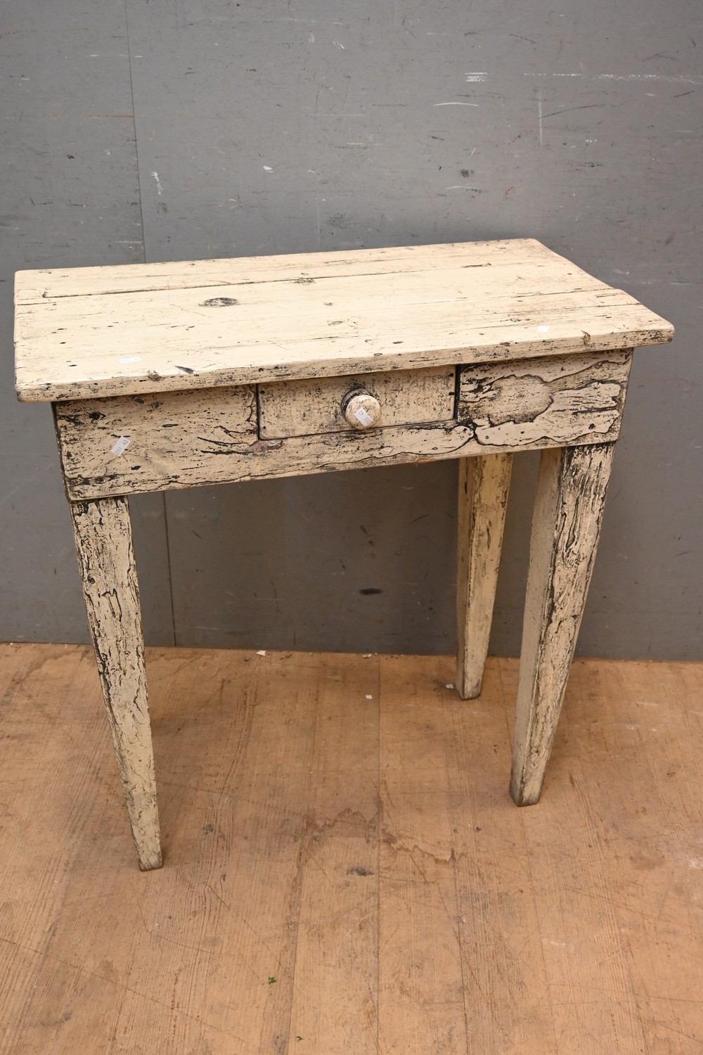 VINTAGE AUSTRALIAN DEPRESSION ERA PAINTED WHITE SINGLE DRAWER PINE SIDE TABLE (A/F) (76H X 74W X 42D CM) (LEONARD JOEL DELIVERY SIZE: LARGE)