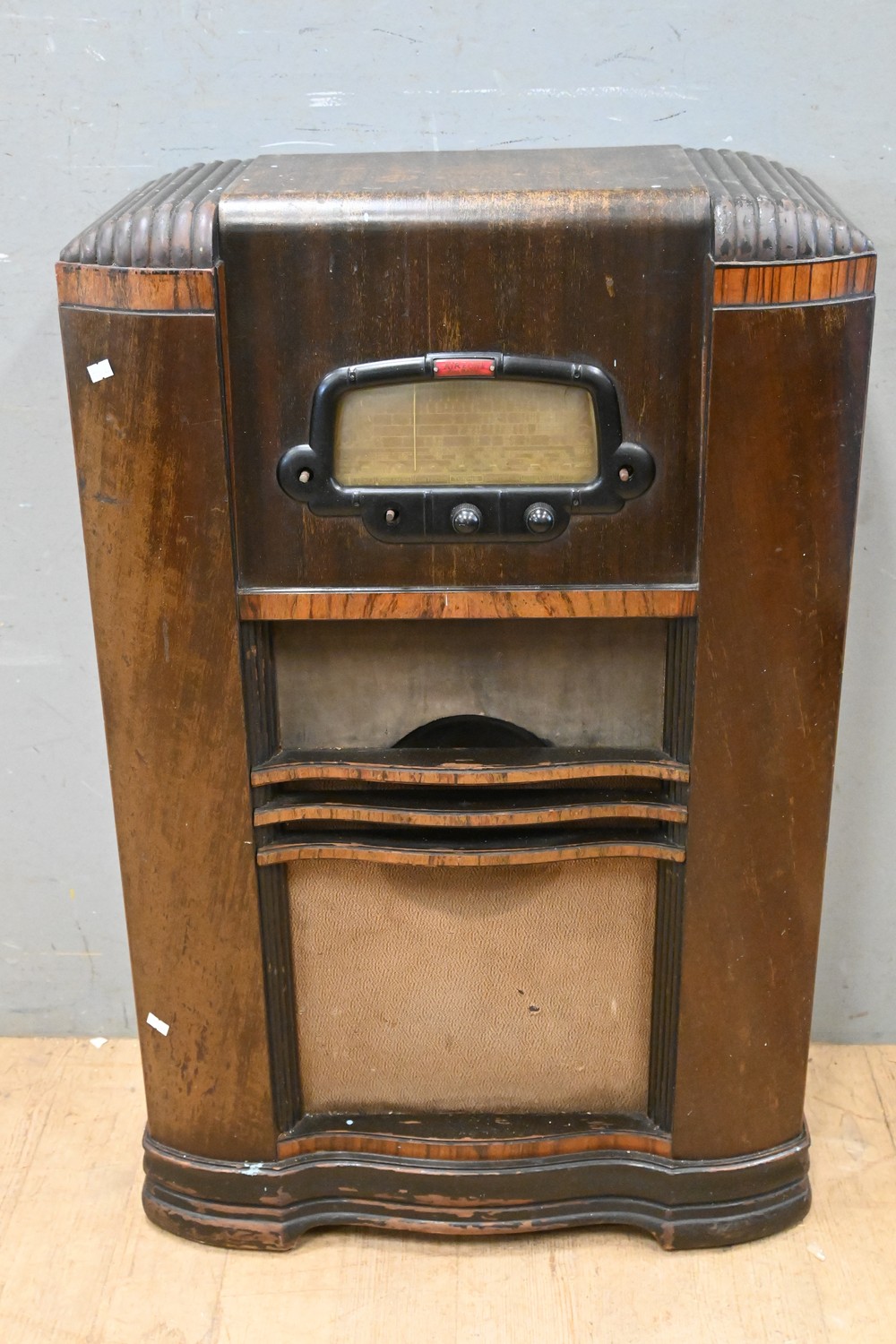 VINTAGE ART DECO WALNUT AND OAK AIRZONE RADIO - WITH ALL VALVED AND ELECTRICS (UNTESTED) (A/F) (92H X 61W X 29D CM) (LEONARD JOEL DELIVERY SIZE: LARGE)