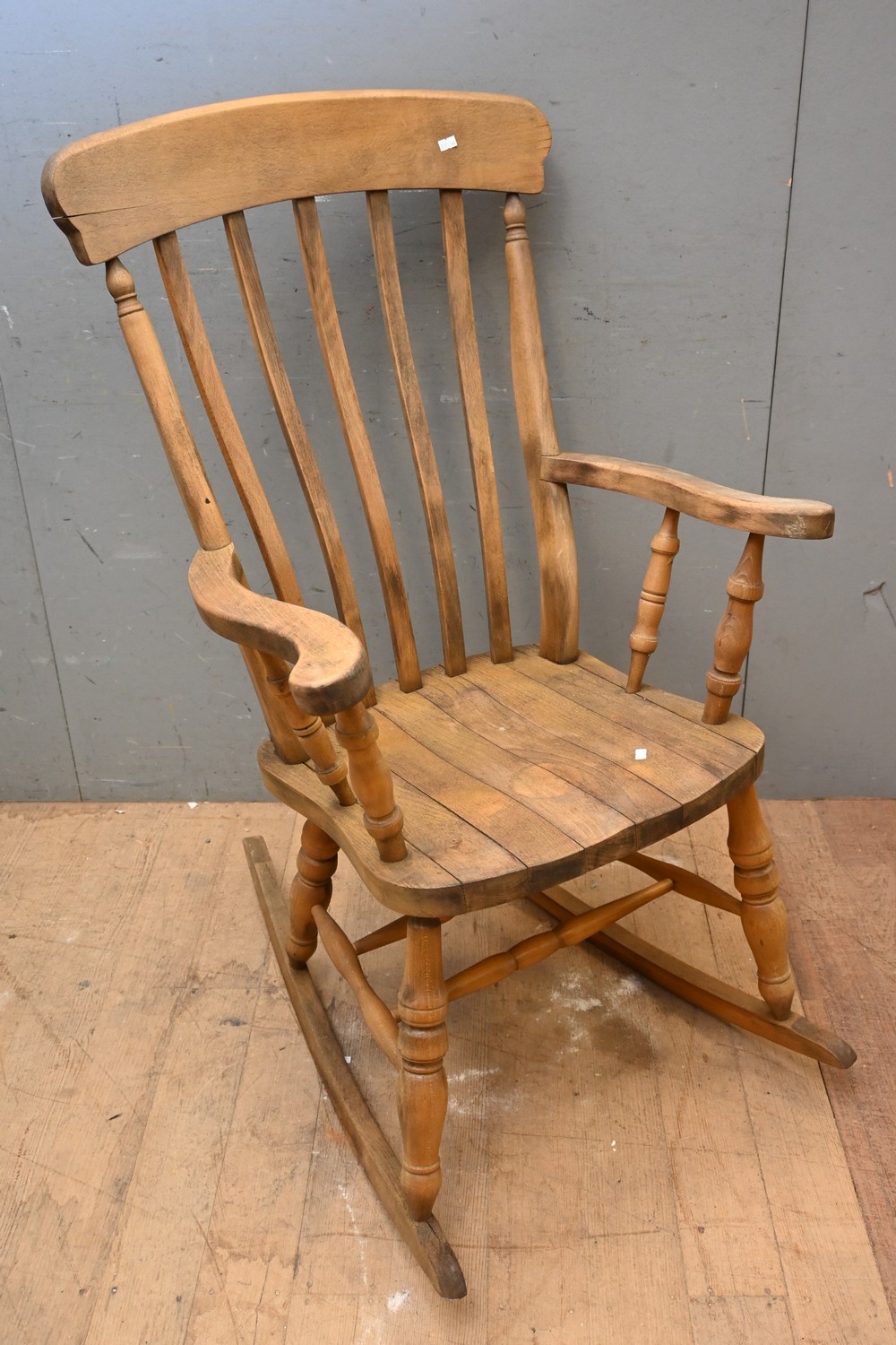 AN EUROPEAN OAK ROCKING CHAIR (112H X 67W X 47D CM) (LEONARD JOEL DELIVERY SIZE: LARGE)