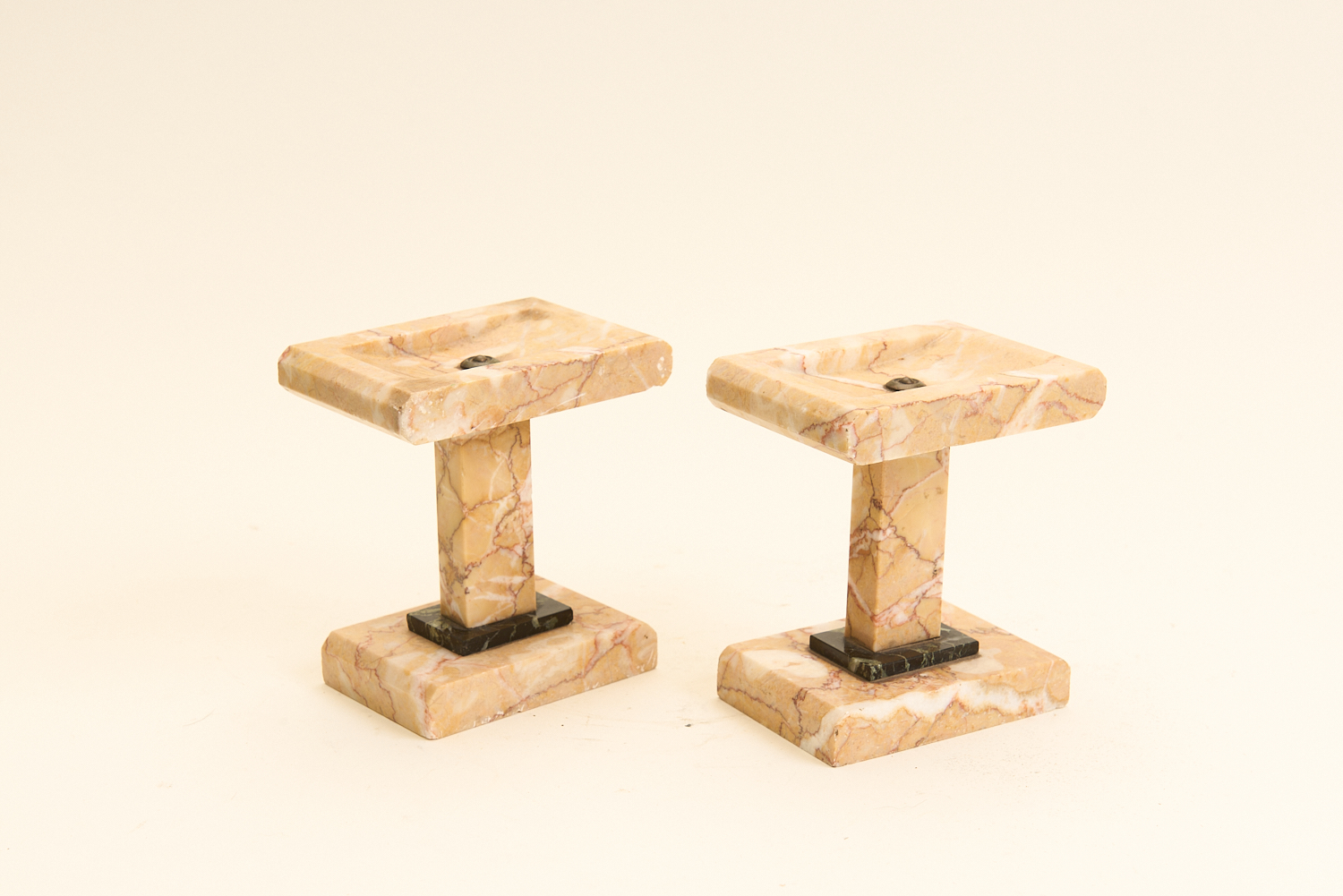 A PAIR OF ART DECO  MARBLE PEDESTAL FORM GARNITURES H.13.5CM, LEONARD JOEL LOCAL DELIVERY SIZE: SMALL