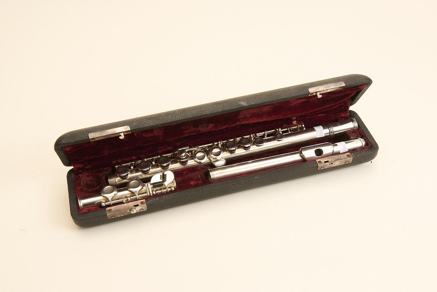 A CASED VINTAGE FLUTE (A/F), LEONARD JOEL LOCAL DELIVERY SIZE: SMALL