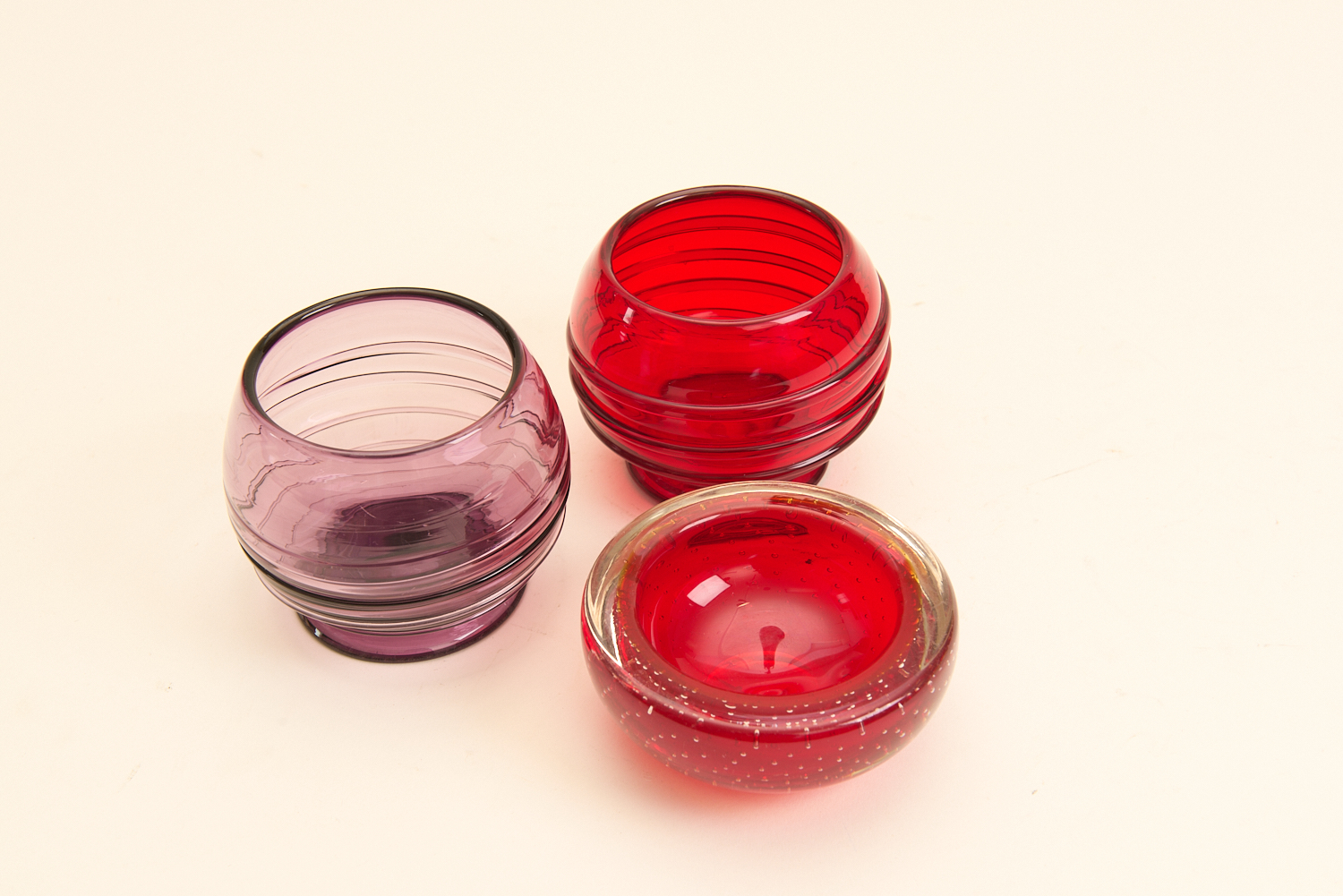 THREE 1960S GLASS BOWLS INCLUDING WHITEFRIARS DIA.10CM, LEONARD JOEL LOCAL DELIVERY SIZE: SMALL