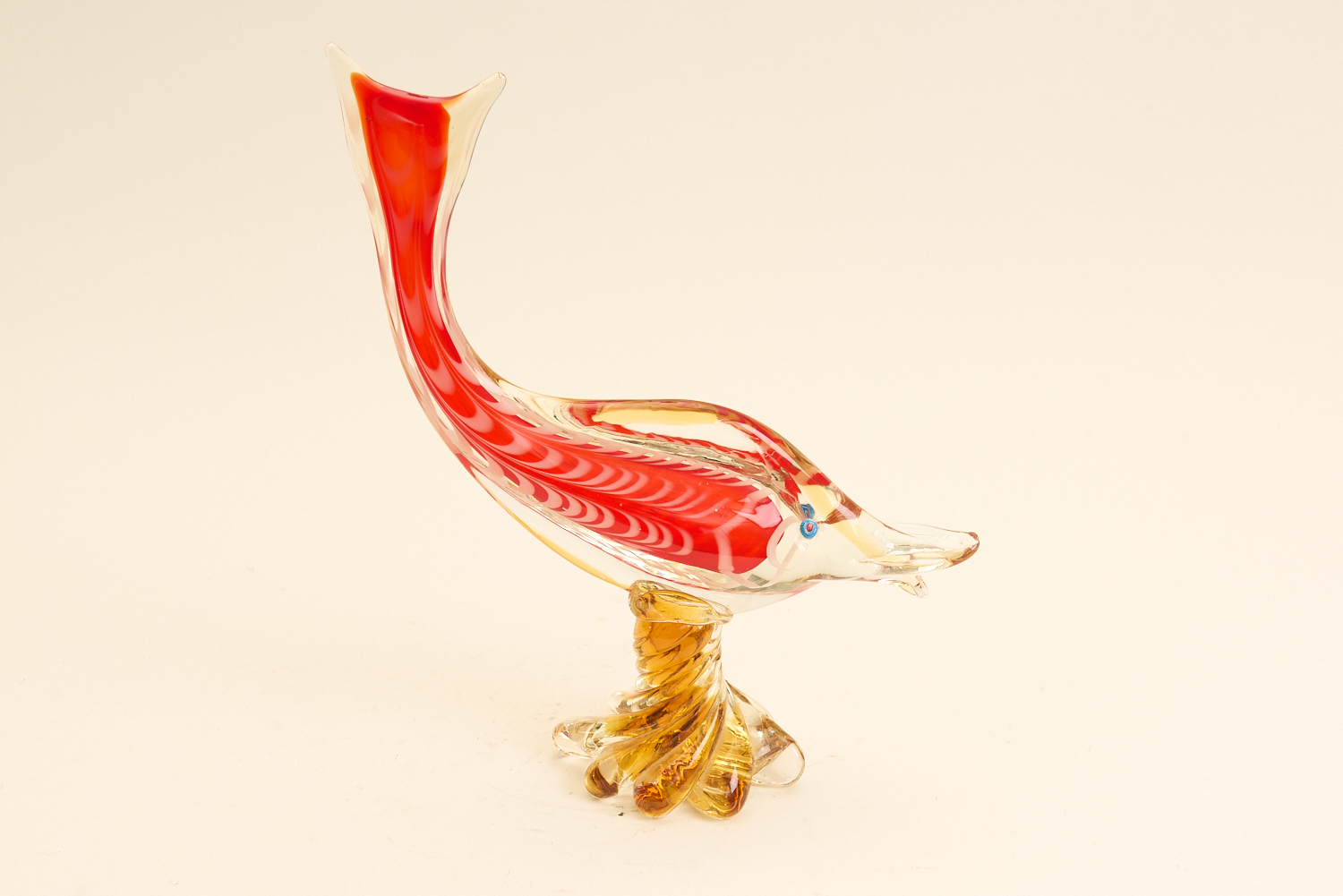 A MID CENTURY STYLE ART GLASS FISH FIGURE H.30CM, LEONARD JOEL LOCAL DELIVERY SIZE: SMALL