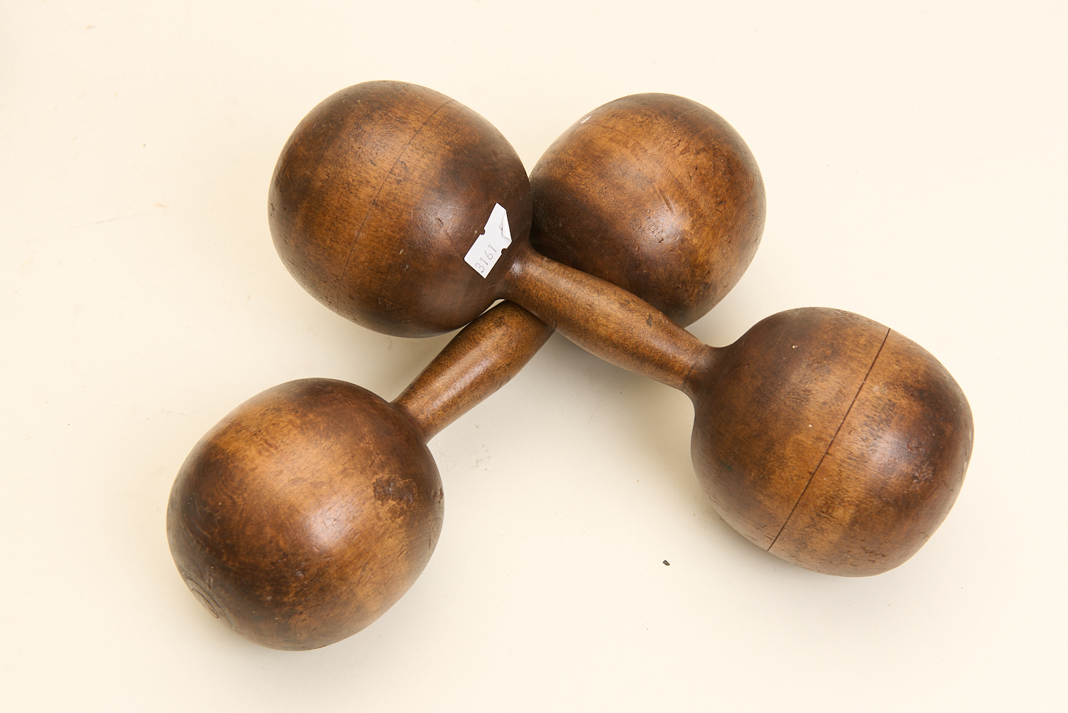 TWO AUSTRALIAN MADE WOODEN DUMBBELLS W.24CM, LEONARD JOEL LOCAL DELIVERY SIZE: SMALL