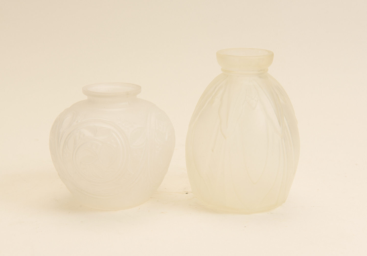 TWO FROSTED GLASS VASES H.17CM (TALLEST), LEONARD JOEL LOCAL DELIVERY SIZE: SMALL