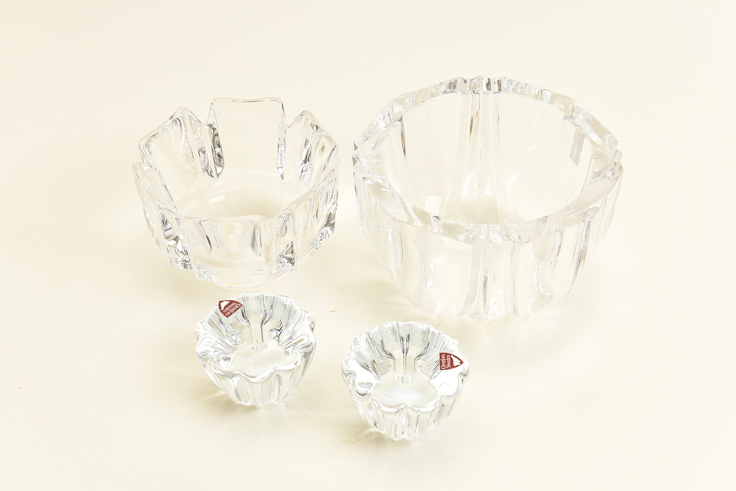 A COLLECTION OF SWEDISH ORREFORS GLASS INCLUDING BOWLS AND PAIR OF CANDLESTICKS, LEONARD JOEL LOCAL DELIVERY SIZE: MEDIUM
