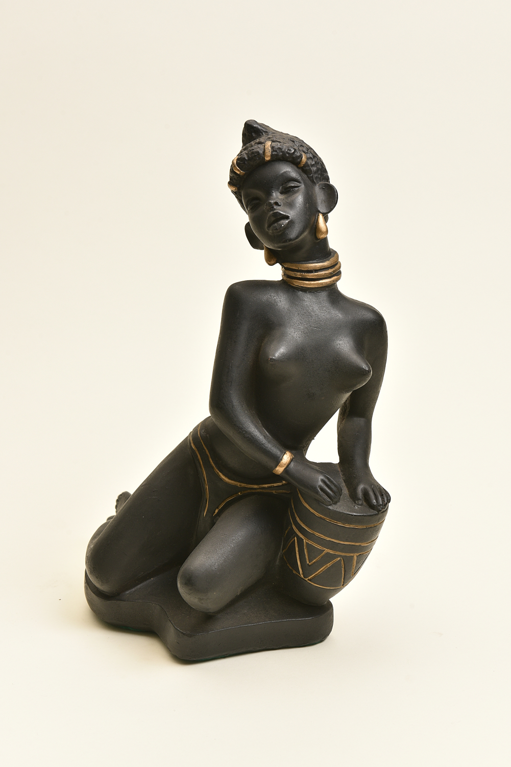 A RETRO NUDE CHALKWARE FIGURE OF A DRUMMING LADY H.31CM, LEONARD JOEL LOCAL DELIVERY SIZE: SMALL