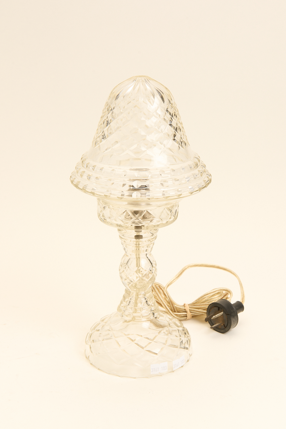 A VINTAGE CUT CRYSTAL MUSHROOM FORM TWO PIECE TABLE LAMP H.36CM, LEONARD JOEL LOCAL DELIVERY SIZE: MEDIUM