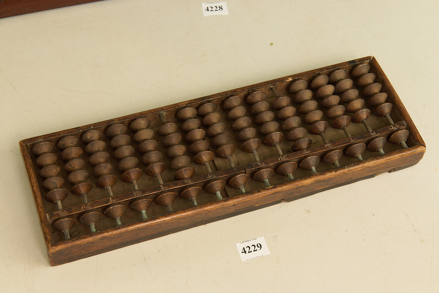 A 19TH-CENTURY ORIENTAL WOODEN ABACUS – SIGNED TO BACK (A/F) W.33CM , LEONARD JOEL LOCAL DELIVERY SIZE: SMALL