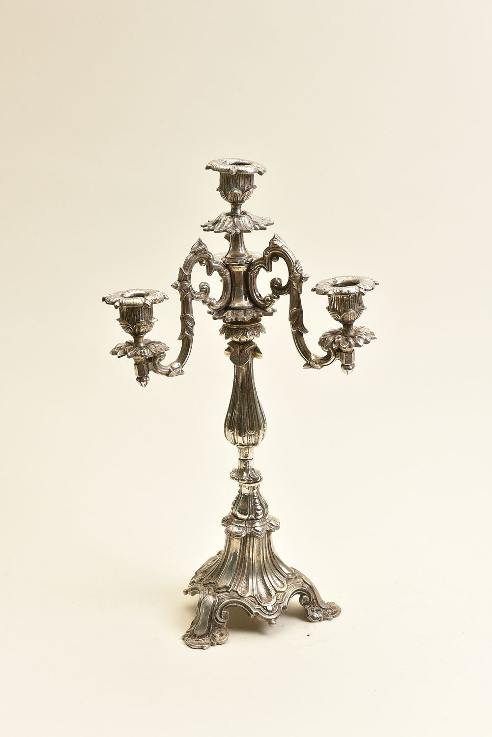 19TH CENTURY FRENCH SILVERPLATE FOUR SCONCE FLORAL DECORATED CANDELABRA H.40.5CM (A/F), LEONARD JOEL LOCAL DELIVERY SIZE: MEDIUM