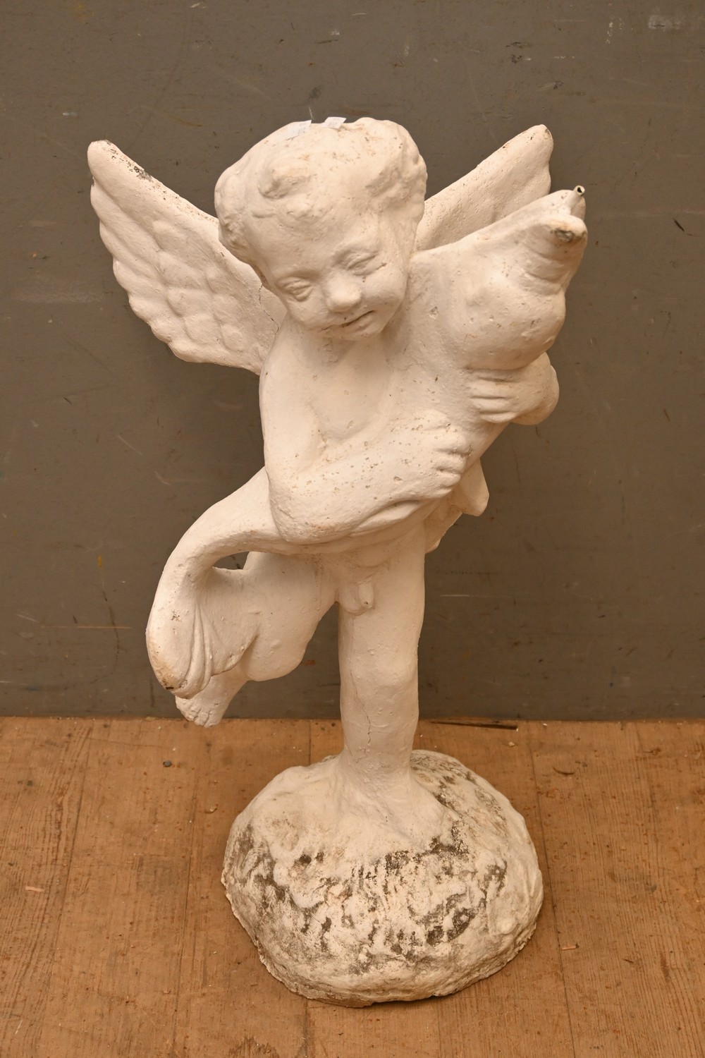 A CONCRETE CHERUB (A/F) (73H CM) (PLEASE NOTE THIS HEAVY ITEM MUST BE REMOVED BY CARRIERS AT THE CUSTOMER'S EXPENSE. LEONARD JOEL STAFF CANNOT ASSIST CARRYING THIS ITEM) (X-LARGE ITEM)