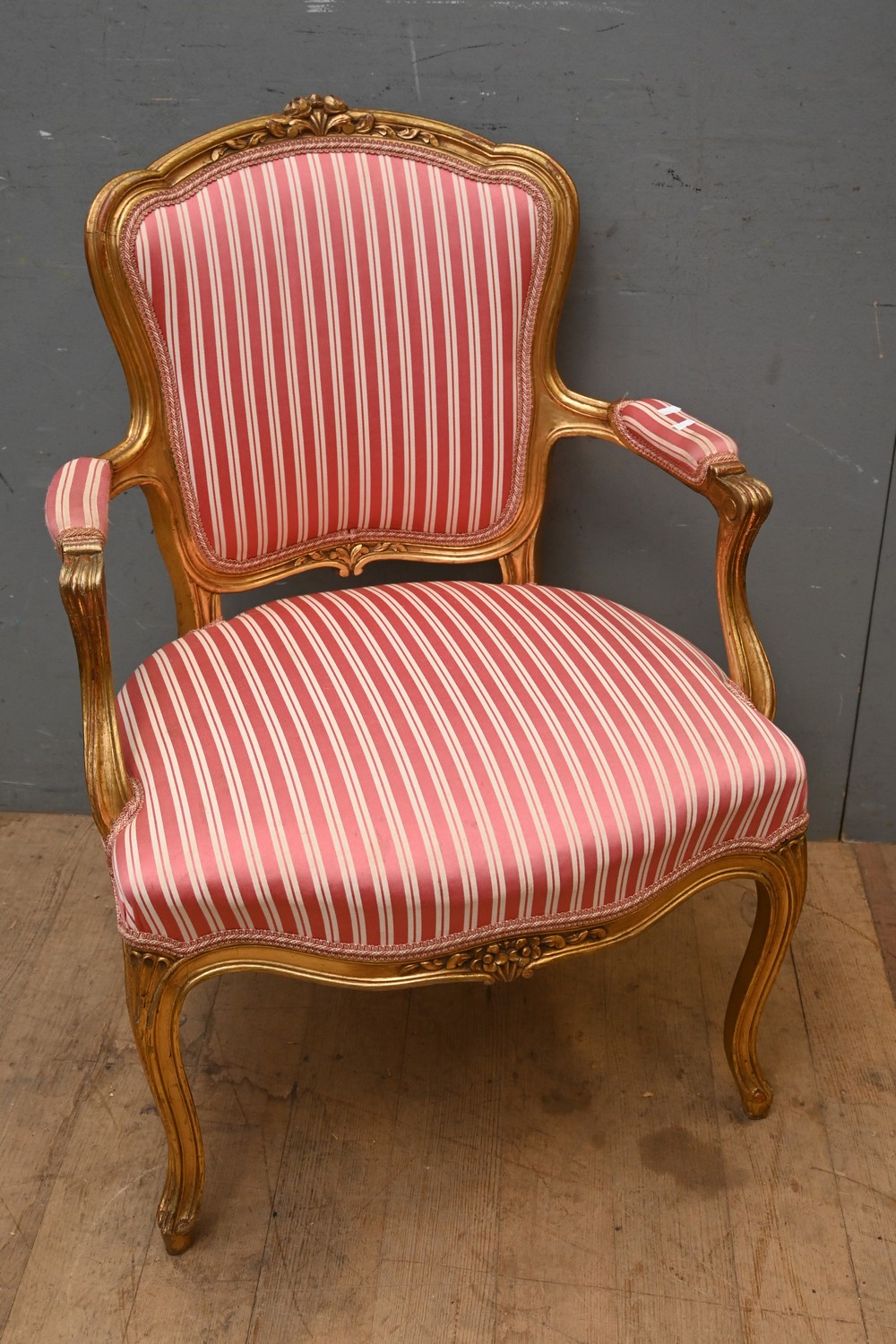 A LOUIS XV STYLE GILTWOOD FAUTEUIL ( 90H X 64W X 63D CM) (LEONARD JOEL DELIVERY SIZE: LARGE)