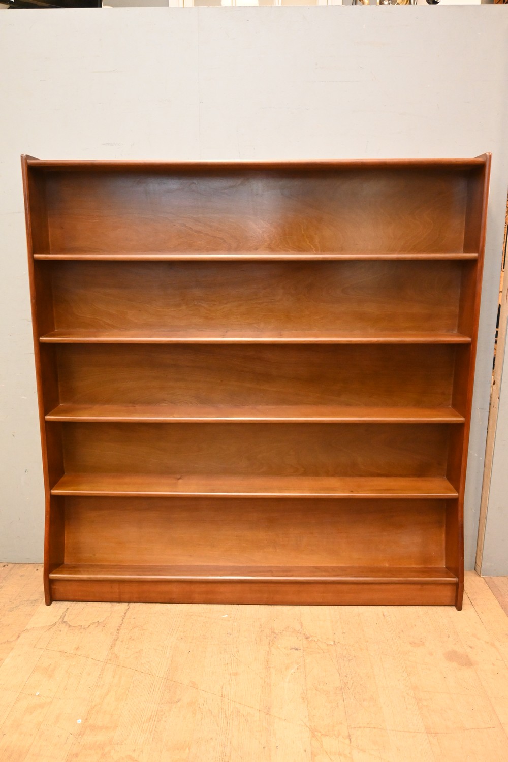 A SOLID MYRTLE OPEN BOOKSHELF (160H X 154W 27D CM) (PLEASE NOTE THIS HEAVY ITEM MUST BE REMOVED BY CARRIERS AT THE CUSTOMER'S EXPENSE. LEONARD JOEL STAFF CANNOT ASSIST CARRYING THIS ITEM) (X-LARGE ITEM)