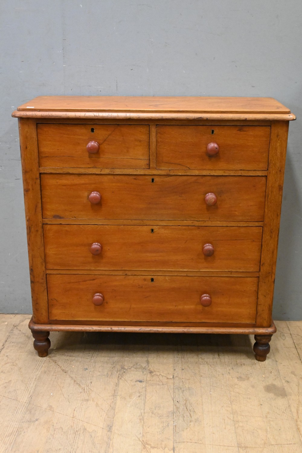 A 19TH CENTURY AUSTRALIAN CEDAR FIVE DRAWER CHEST (A/F) (105H X 100W X 40D CM) (PLEASE NOTE THIS HEAVY ITEM MUST BE REMOVED BY CARRIERS AT THE CUSTOMER'S EXPENSE. LEONARD JOEL STAFF CANNOT ASSIST CARRYING THIS ITEM) (X-LARGE ITEM)