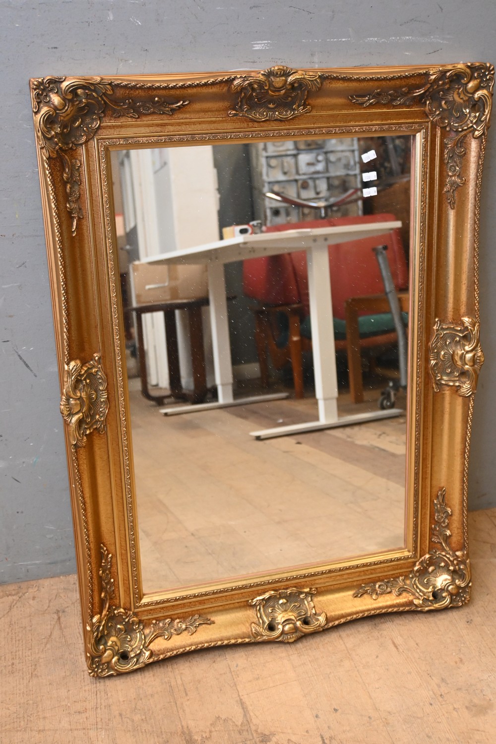 A DECORATIVE GILT EFFECT MIRROR (96H X 70W CM) (LEONARD JOEL DELIVERY SIZE: LARGE)