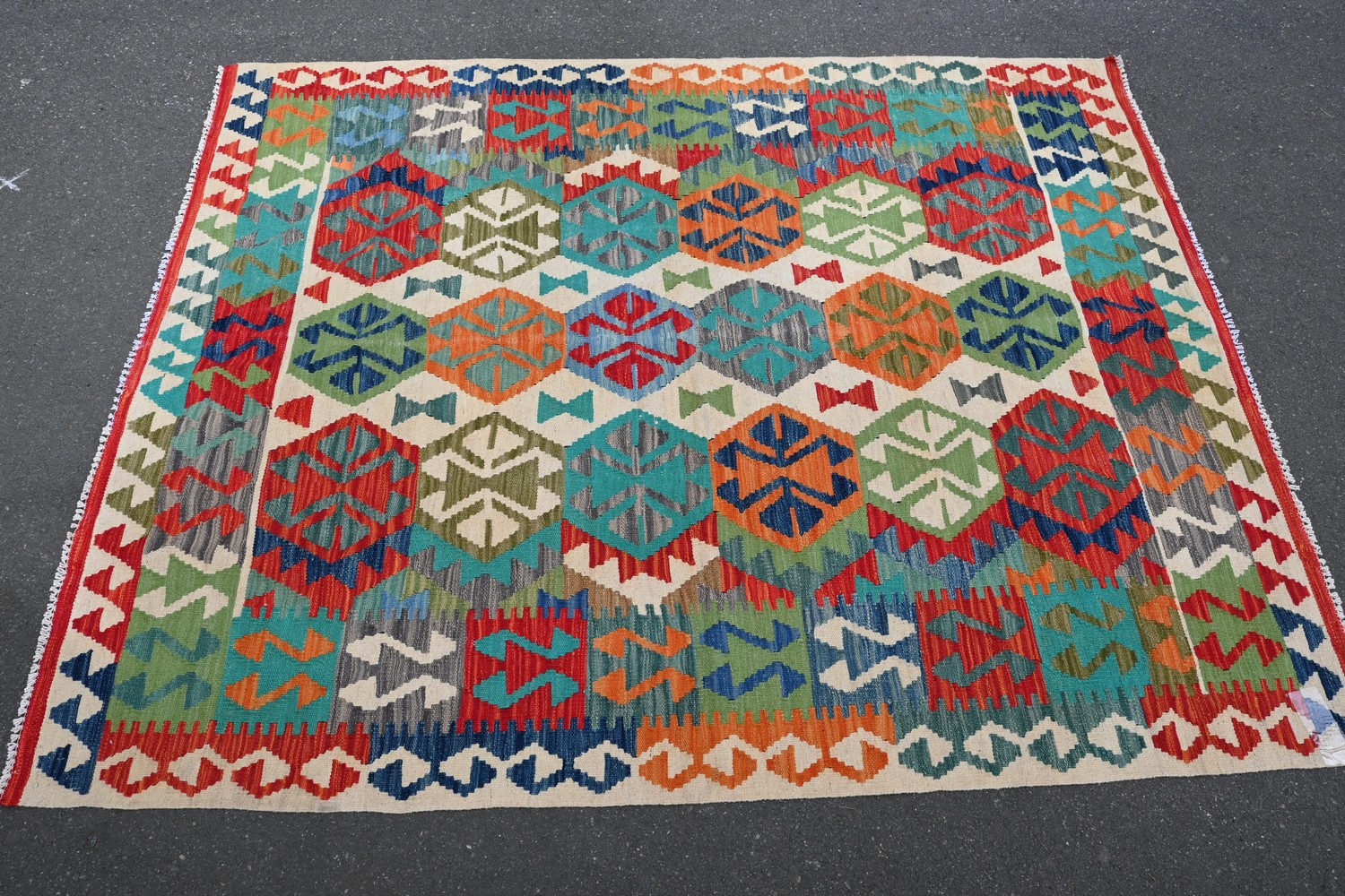 A HANDMADE AFGHAN KAZAK KILIM HANDMADE WITH NATURAL VEGETABLE DYES, ALL HAND WOVEN (195 X 152 CM) (LEONARD JOEL DELIVERY SIZE: LARGE)