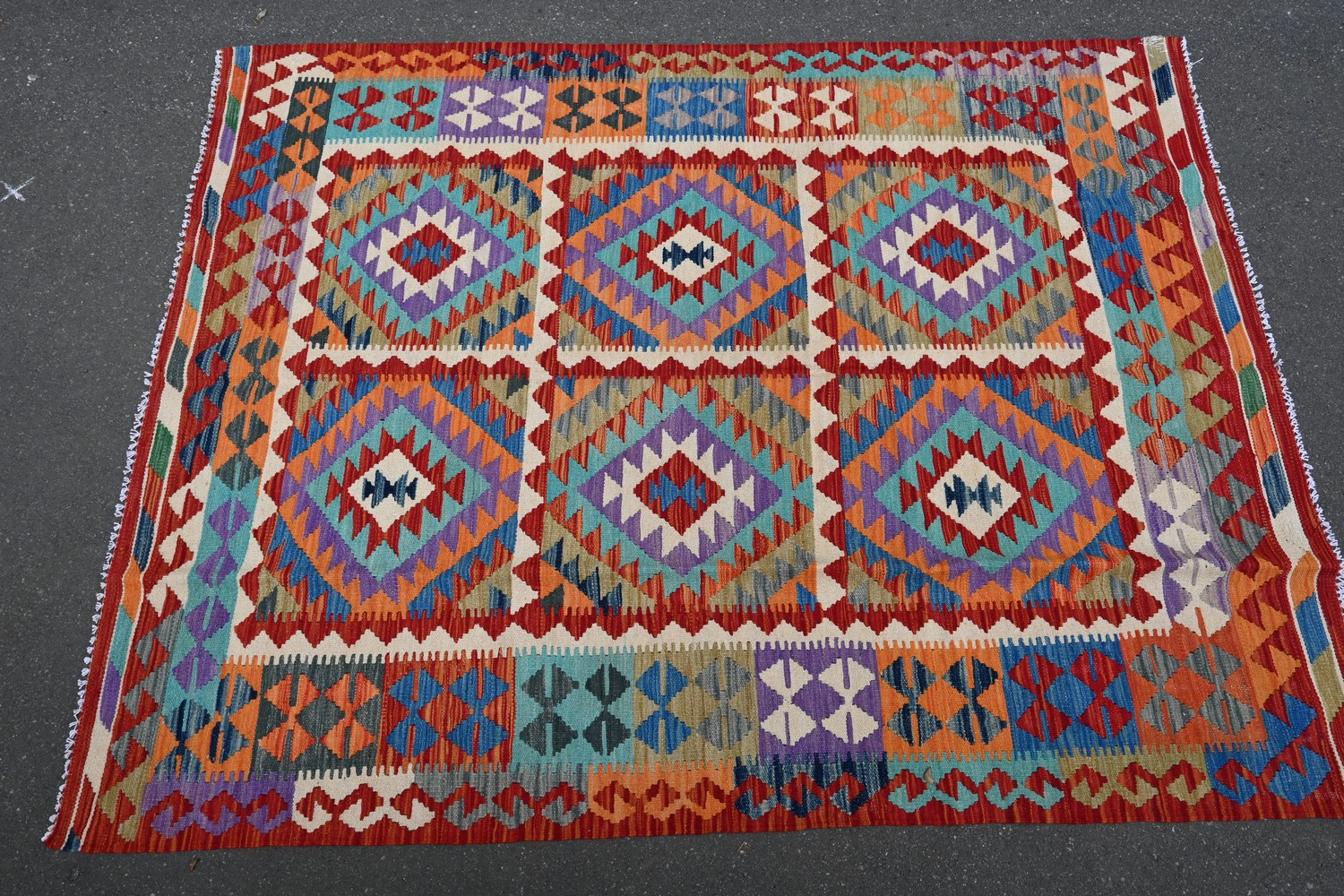 A HANDMADE AFGHAN KAZAK KILIM HANDMADE WITH NATURAL VEGETABLE DYES, ALL HAND WOVEN (207 X 159 CM) (LEONARD JOEL DELIVERY SIZE: LARGE)