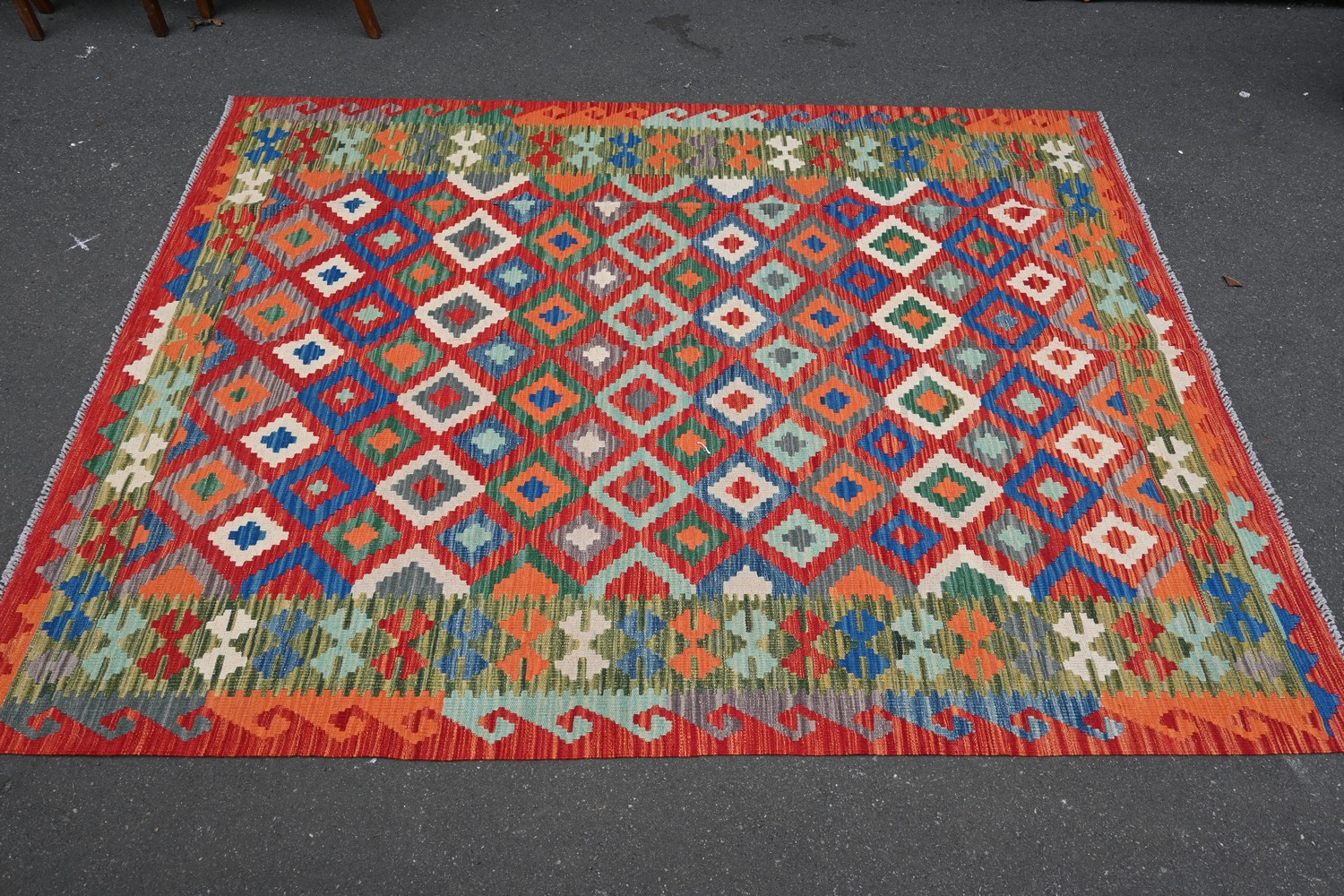 A HANDMADE AFGHAN KILIM HANDMADE WITH NATURAL VEGETABLE DYES, ALL HAND WOVEN (245 X 179 CM) (LEONARD JOEL DELIVERY SIZE: LARGE)