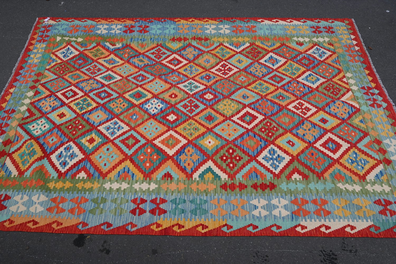 A HANDMADE AFGHAN KILIM HANDMADE WITH NATURAL VEGETABLE DYES, ALL HAND WOVEN (308 X 206 CM) (LEONARD JOEL DELIVERY SIZE: LARGE)
