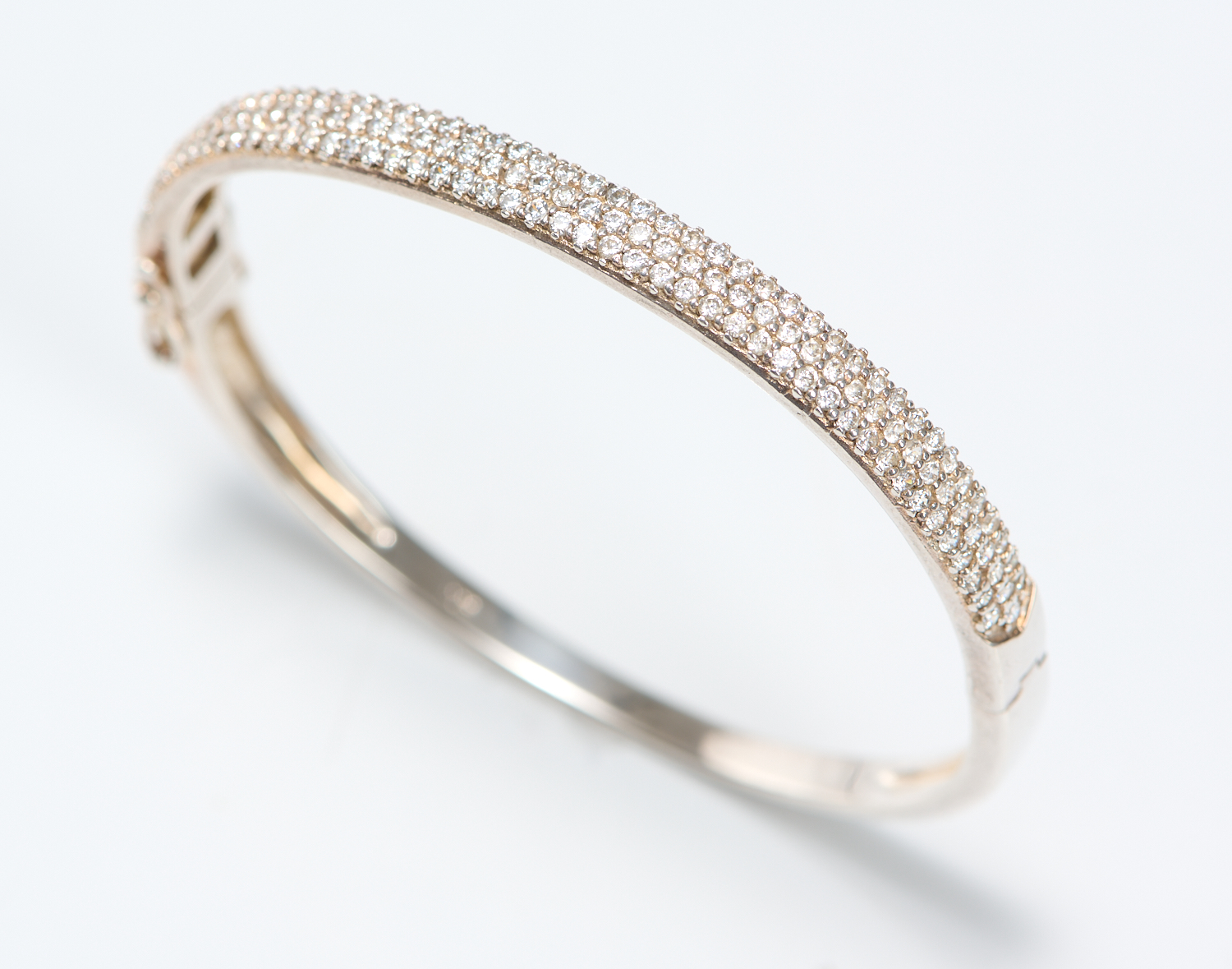 A DIAMOND LINE BRACELET COMPRISING FORTY THREE ROUND BRILLIANT CUT DIAMONDS TOTALLING 9.33CTS, IN 14CT GOLD, TOTAL LENGTH 170MM
