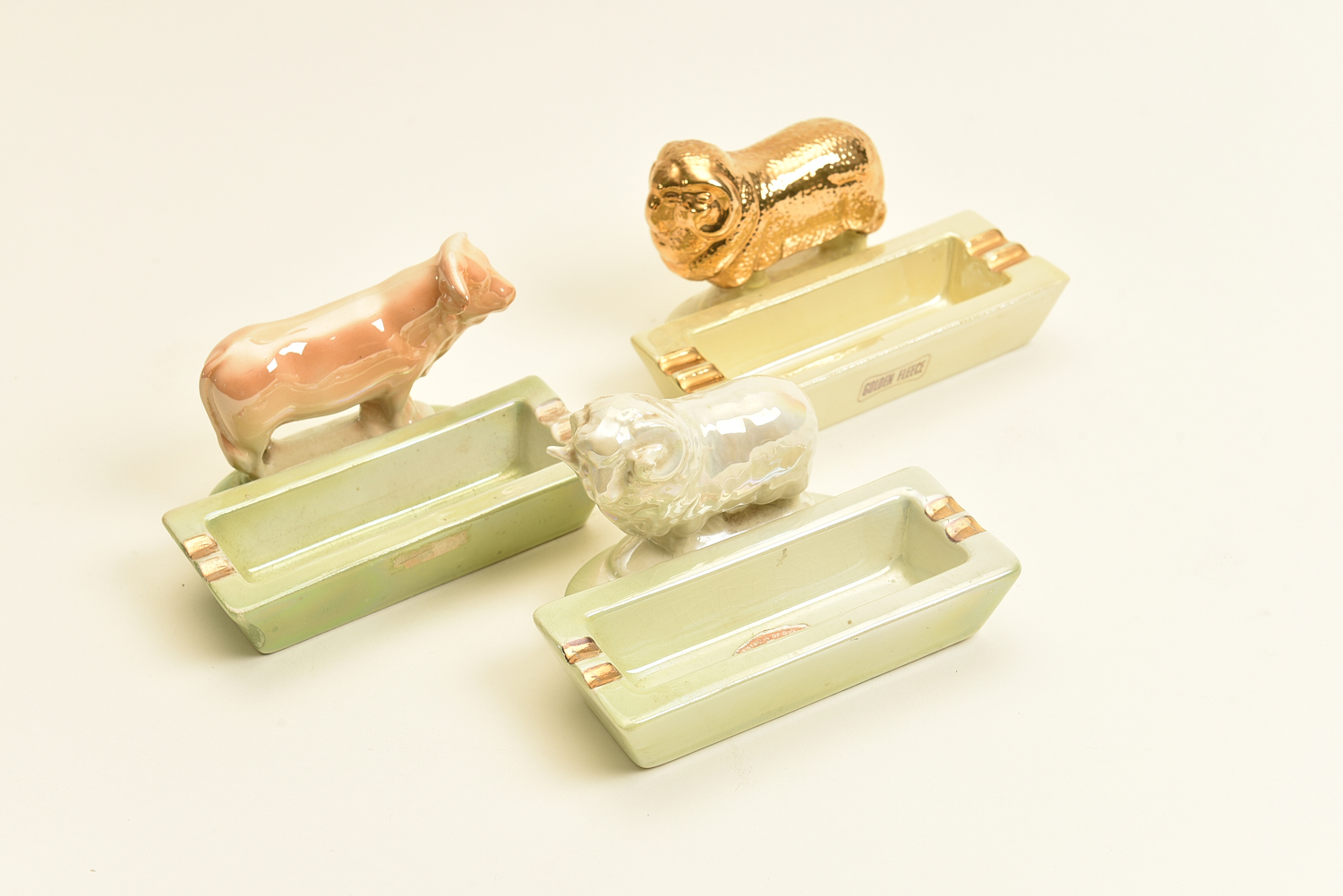 A GROUP OF WEMBLEY WARE LUSTRE GLAZED ASHTRAYS WITH ANIMAL MOTIF W.13CM, LEONARD JOEL LOCAL DELIVERY SIZE: SMALL
