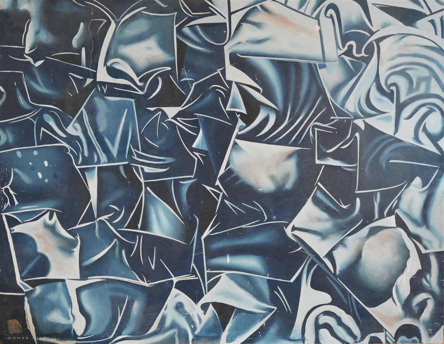 JAMES FLETT, ABSTRACT (BLUE) 1966, OIL ON MASONITE, 63 X 82.5CM UNFRAMED