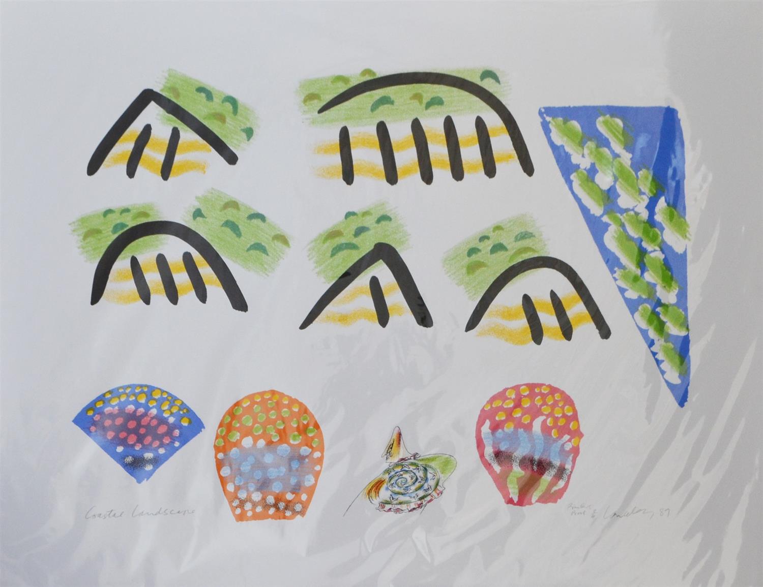 COLIN LANCELEY, COASTAL LANDSCAPE 1987, SCREENPRINT P/P 3/4, 65 X 85CM (IMAGE SIZE)