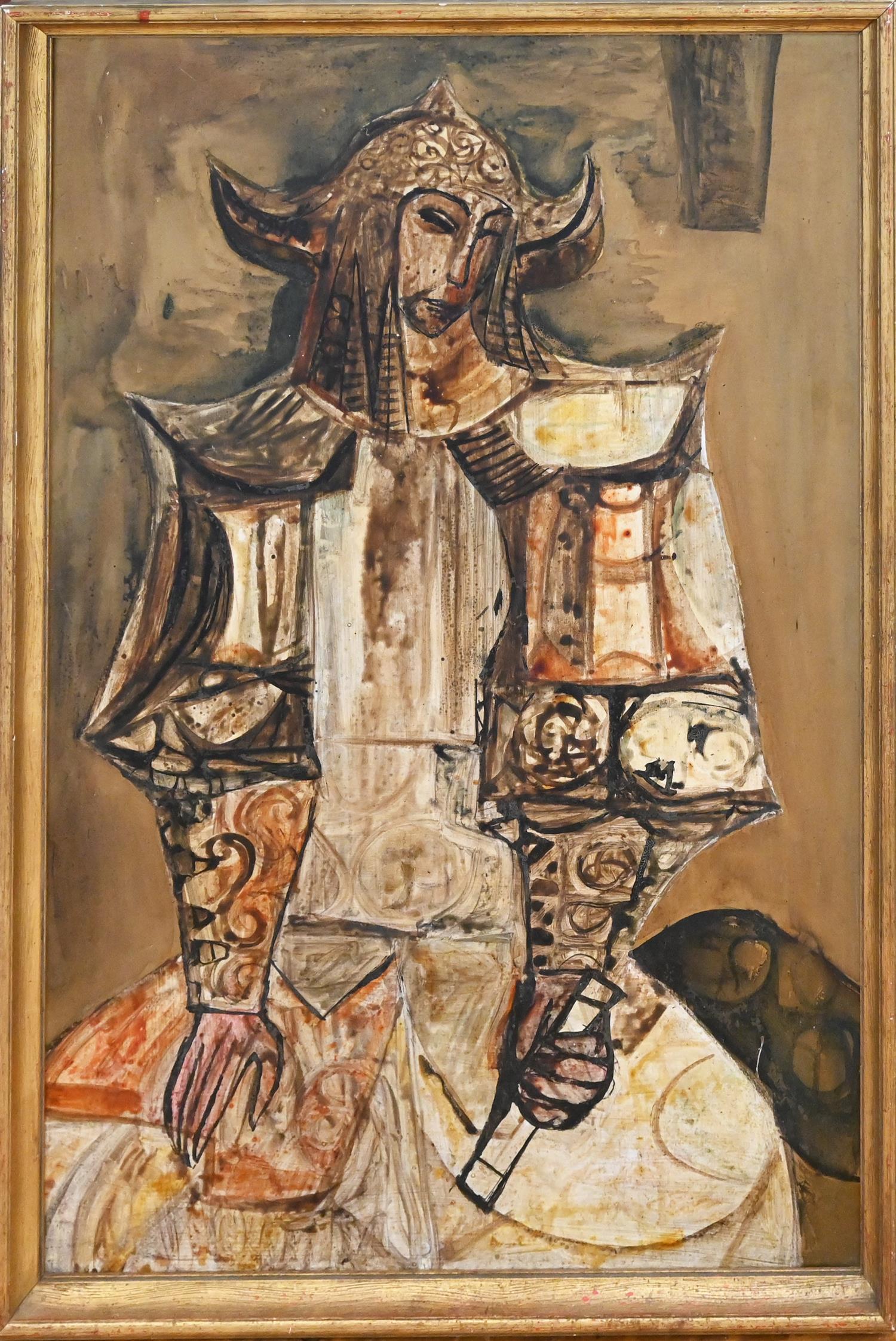 ARTIST UNKNOWN, UNTITLED (WARRIOR), OIL ON BOARD, 93 X 59CM